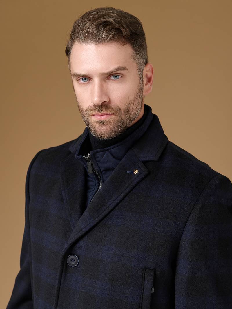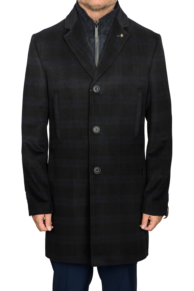 5046-4M CHEK BLACK NAVY/Пальто мужское