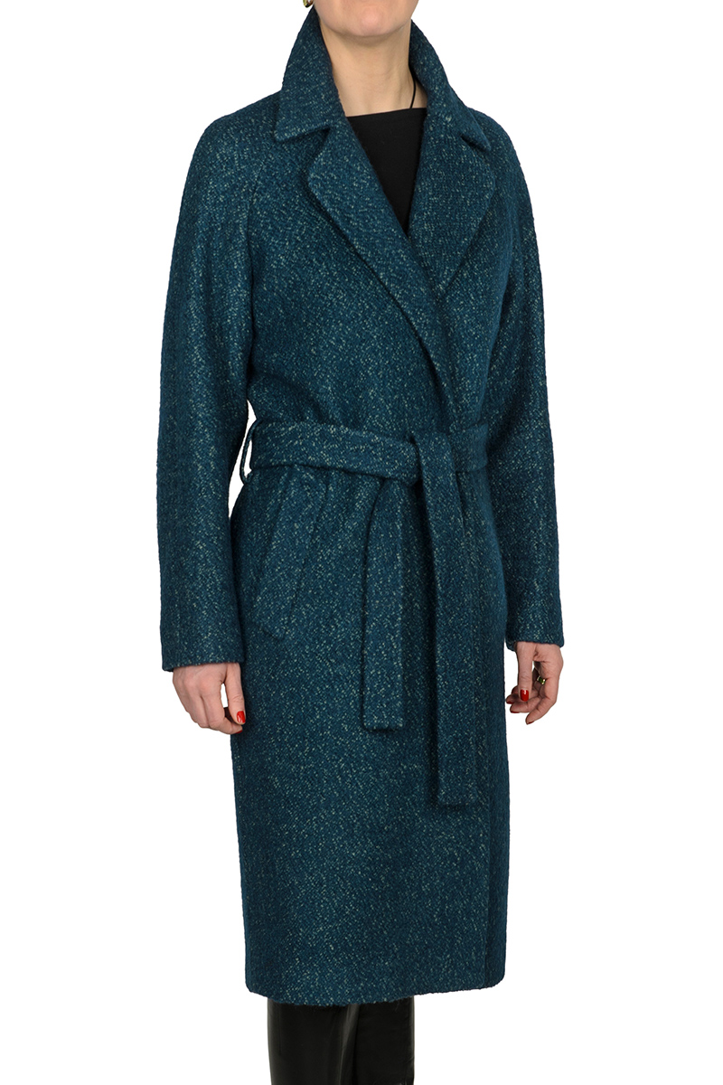 Пальто женское. застежка двубортная на потайные кнопки. карманы-прорезные с листочкой. воротник-отложной. спинка со шлицей на потайных кнопках.