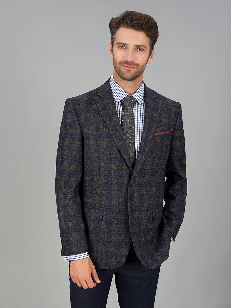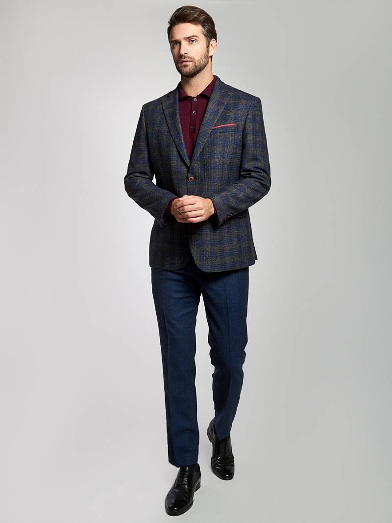 Classic fit, Классический мужской пиджак на две пуговицы, с боковыми и нагрудным карманами, по спинке две шлицы, в нагрудном кармане декоративный платок.