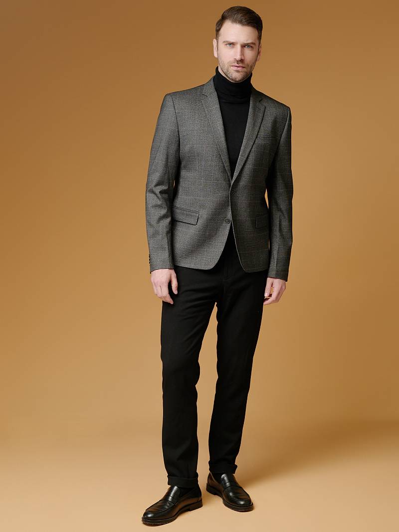 Slim fit, Классический мужской пиджак на две пуговицы, с боковыми и нагрудным карманами, по спинке одна шлица.
