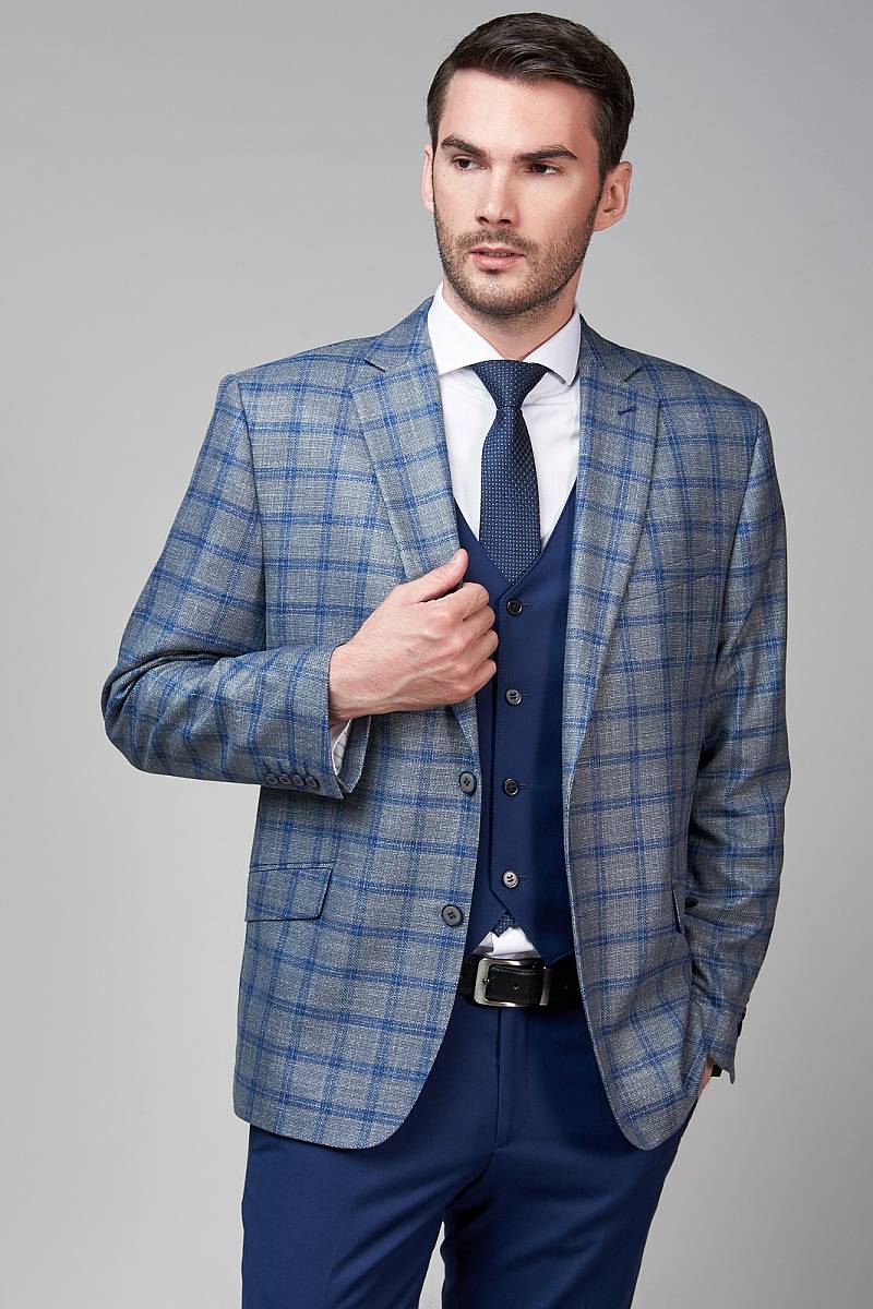 Slim fit, Классический мужской пиджак на две пуговицы, с боковыми и нагрудным карманами, по спинке одна шлица.