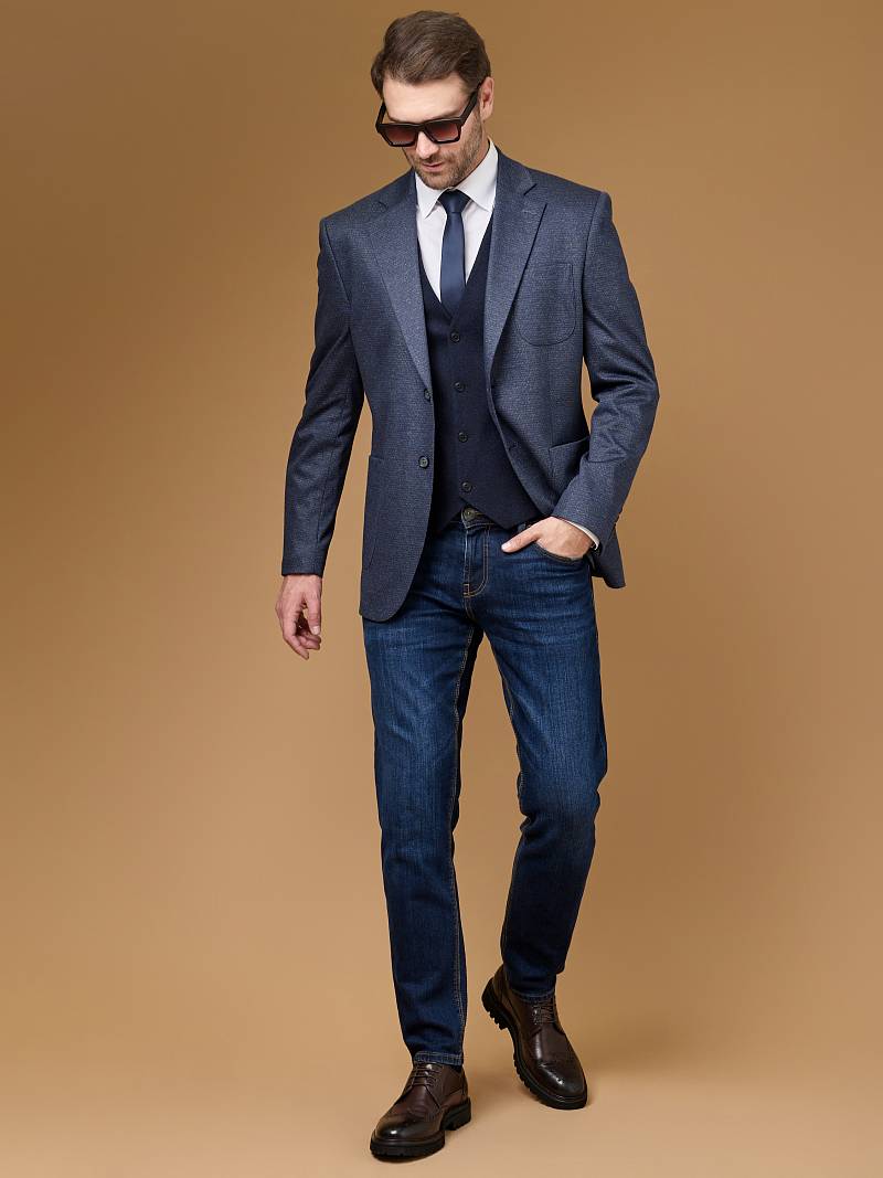 Classic fit (ПОЛУПРИЛЕГАЮЩИЙ СИЛУЭТ). Пиджак марки LACONI.– это идеальное сочетание стиля и комфорта для мужчин, которые ценят качественный пошив и изысканный дизайн. Вместо привычной костюмной ткани, для пошива этой модели в стиле CASUAL, использовали эластичный трикотаж, который обеспечивает дополнительный комфорт и удобство. Модель с накладными карманами гармонично впишется в любой образ, его можно носить свободно под джинсы или с классическими брюкими. Полуприлегающий, лаконичный силуэт садится по фигуре, таким образом подчеркивая ее достоинства и отлично подходит для любого случая в жизни. Пиджак на двух пуговицах, с двумя боковыми карманами с клапаном и нагрудной листочкой. Шлица на втачных рукавах украшена четырьмя декоративными пуговицами. Расположенные по спинке две шлицы обеспечивают свободу движения. Пиджак обработан подкладкой с добавлением эластана, что придает изделию дополнительное удобство и не ограничивает в движении. Дизайнеры марки LACONI тщательно подходят к выбору материалов. Пуговицы подбираются и красятся индивидуально под каждую ткань, а прикладные материалы используют только от передовых производителей. Пиджак мужской, классический, под джины, повседневный, молодежный, casual, для работы в офисе, модный, для мужа, сына, брата, на праздник.