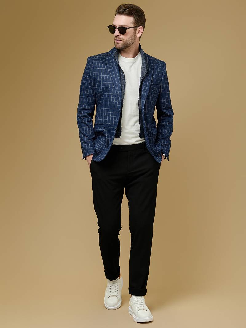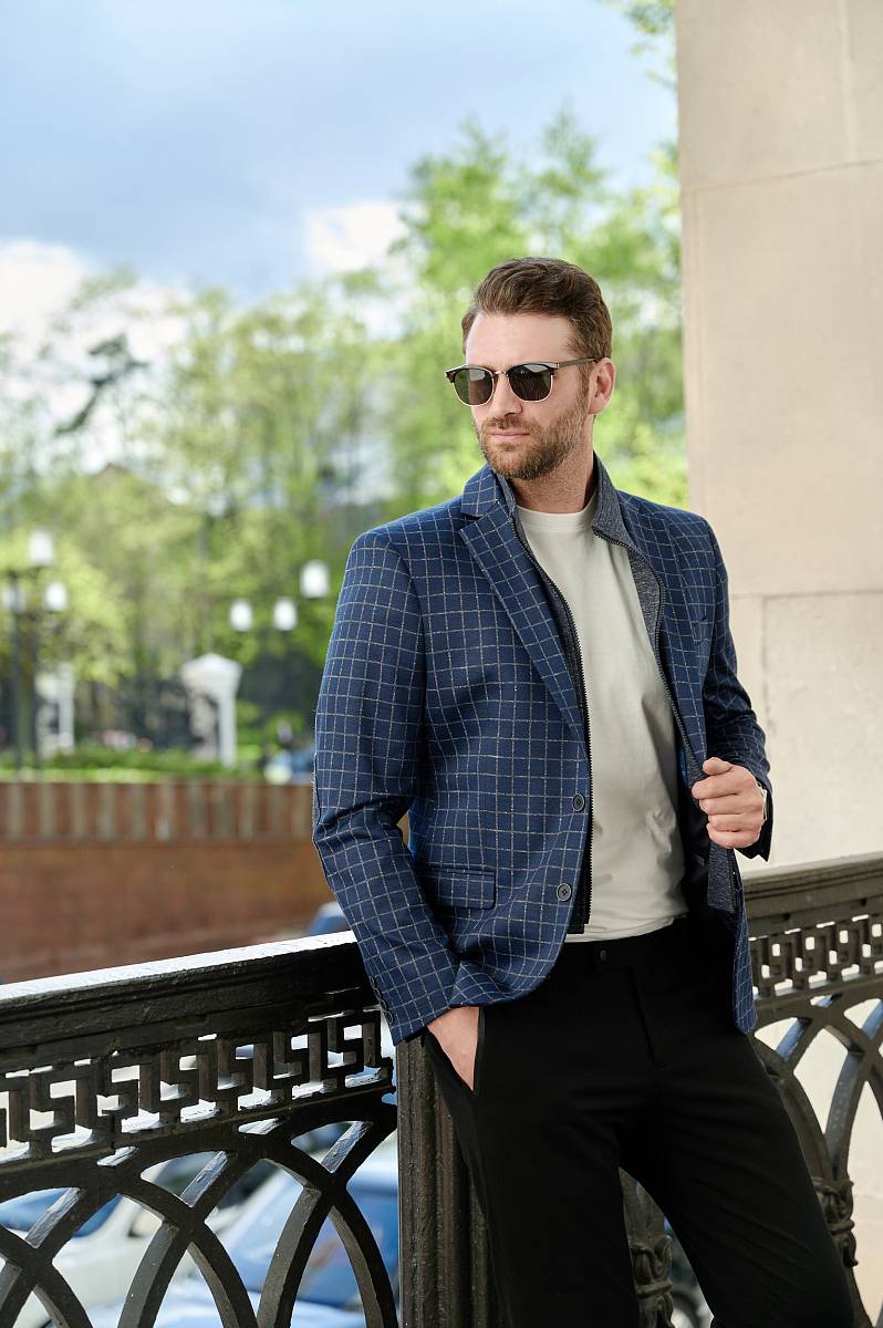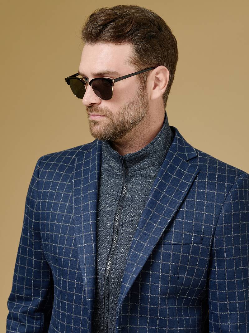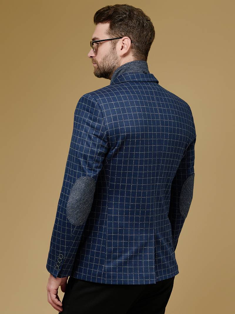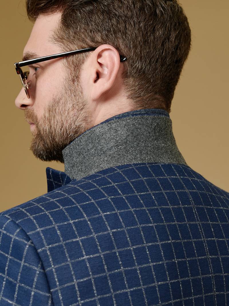Classic fit Однобортный пиджак на две пуговицы со съемной манишкой на молнии, по спинке одна шлица. Манишка и налокотники выполнены из отделочной ткани.