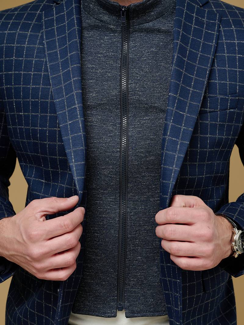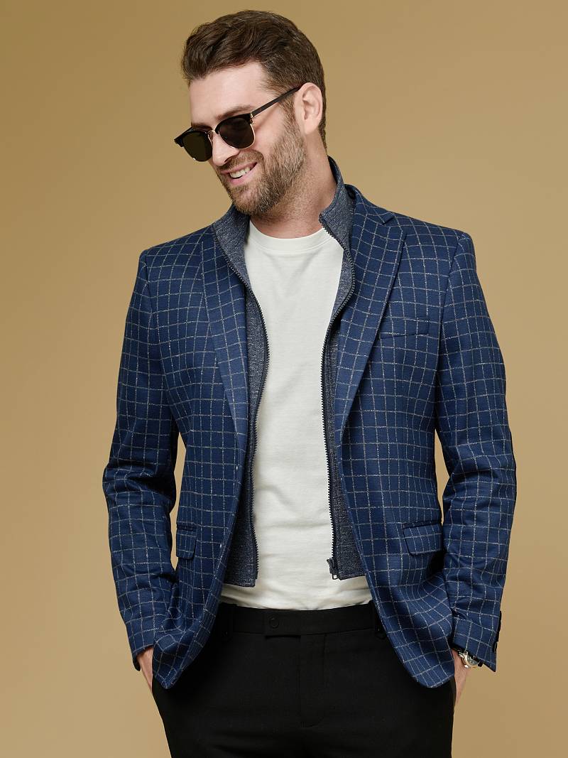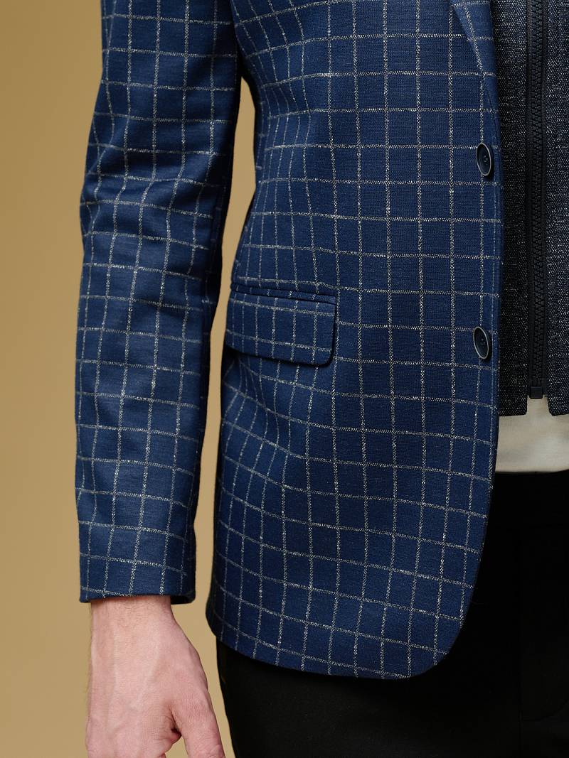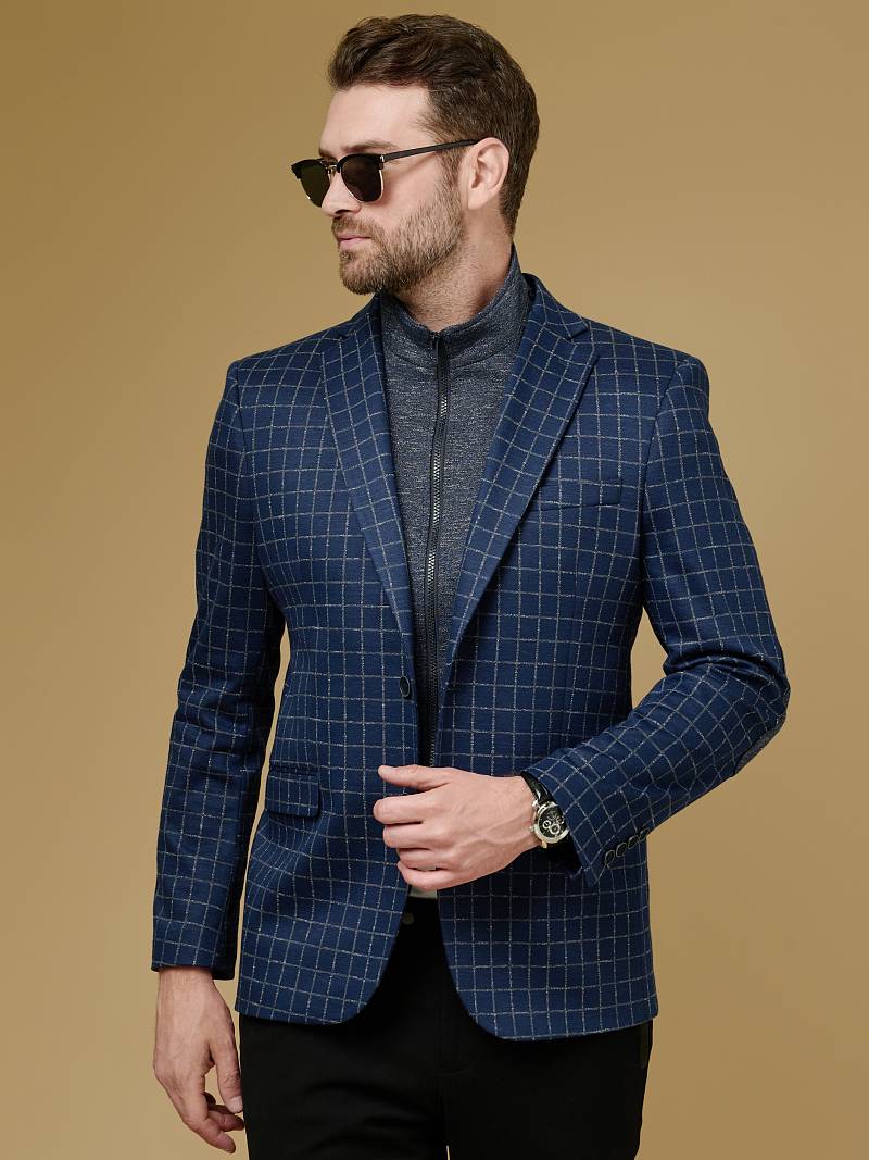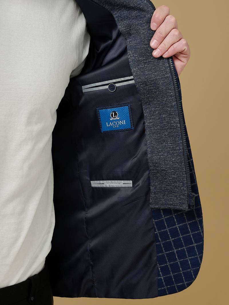 Classic fit Однобортный пиджак на две пуговицы со съемной манишкой на молнии, по спинке одна шлица. Манишка и налокотники выполнены из отделочной ткани.