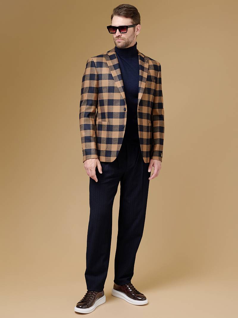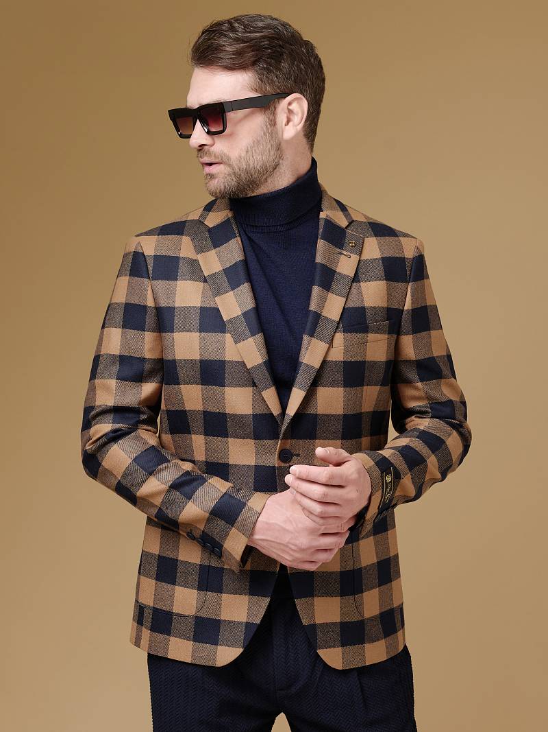 Slim fit (ПРИЛЕГАЮЩИЙ СИЛУЭТ), рекомендуется брать на размер больше. Пиджак марки BAZIONI– это идеальный баланс между внешним видом и комфортом. Приталенная однобортная модель на две пуговицы с накладными карманами сшита из яркой ткани в клетку, которая выделит вас из толпы и даст почувствовать себя особенным. Приталенный силуэт садится точно по фигуре, таким образом подчеркивая ее достоинства и отлично подходит для неформального дресс-кода. Лацканы украсили небольшим значком в виде эмблемы бренда. Расположенные по спинке две шлицы обеспечивают дополнительный комфорт и свободу движения. Обработан пиджак шелковой подкладкой с двумя внутренними карманами. Дизайнеры марки BAZIONI тщательно подходят к выбору материалов. Пуговицы подбираются и красятся индивидуально под каждую ткань, а прикладные материалы используют только от передовых производителей. Пиджак мужской, классический, под джины, повседневный, молодежный, casual, для работы в офисе, модный, для мужа, сына, брата, на праздник.