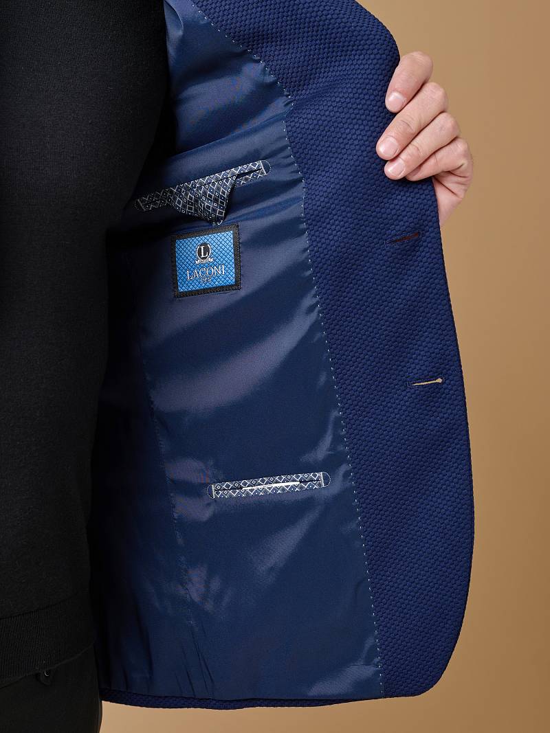 Slim fit (ПРИЛЕГАЮЩИЙ СИЛУЭТ), рекомендуется брать на размер больше. Пиджак марки LACONI.– это идеальное сочетание стиля и комфорта для мужчин, которые ценят качественный пошив и изысканный дизайн. Вместо привычной костюмной ткани, для пошива этой модели использовали эластичный трикотаж, который обеспечивает дополнительный комфорт и удобство. Приталенный, лаконичный силуэт садится точно по фигуре, таким образом подчеркивая ее достоинства и отлично подходит для любого случая в жизни. Пиджак на двух пуговицах, с двумя боковыми накладными карманами и нагрудной листочкой. Для придания образу торжественности подкладку нагрудного кармана можно использовать как платок. Шлица на втачных рукавах украшена четырьмя декоративными пуговицами. Расположенные по спинке две шлицы обеспечивают свободу движения. Пиджак обработан подкладкой с добавлением эластана, что придает изделию дополнительное удобство и не ограничивает в движении. Дизайнеры марки LACONI тщательно подходят к выбору материалов. Пуговицы подбираются и красятся индивидуально под каждую ткань, а прикладные материалы используют только от передовых производителей. Пиджак мужской, классический, под джины, повседневный, молодежный, casual, для работы в офисе, модный, для мужа, сына, брата, на праздник.