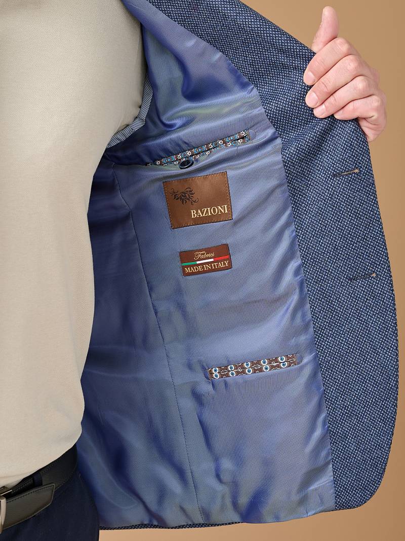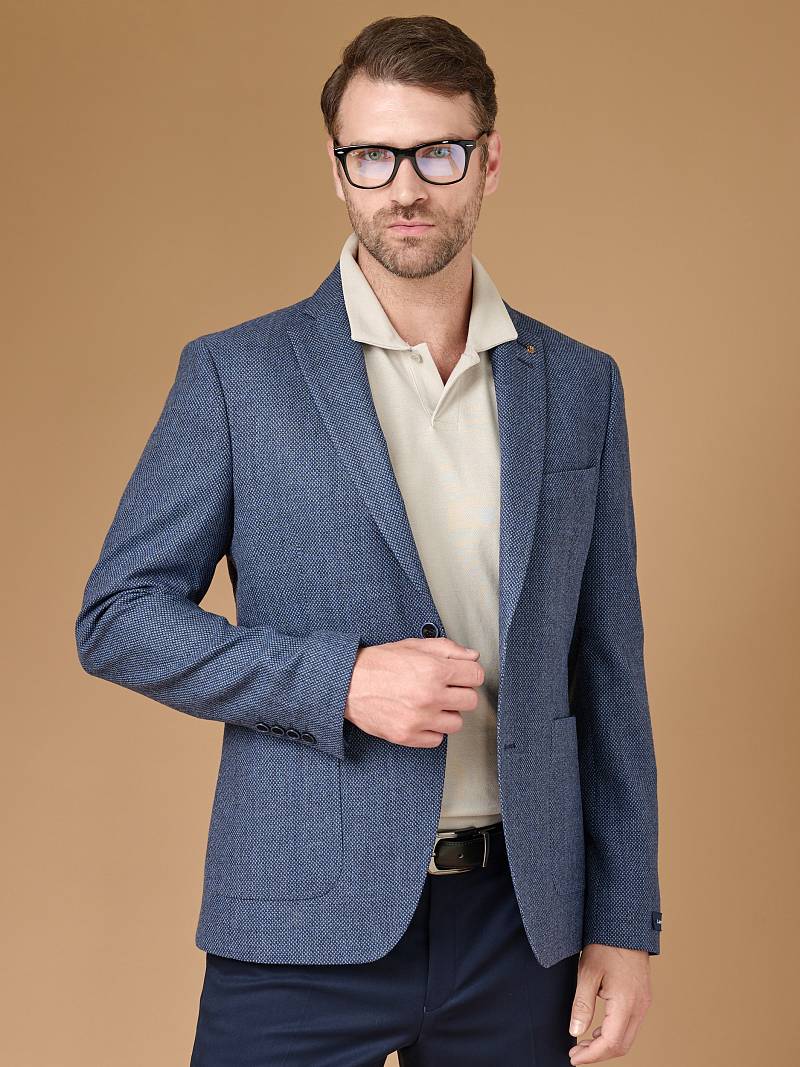 Slim fit (ПРИЛЕГАЮЩИЙ СИЛУЭТ), рекомендуется брать на размер больше. Модный пиджак в стиле CASUAL выполнен из шерстяной ткани темно-синего цвета с класическим паттерном BIRD’S EYE. Модель с накладными карманами гармонично впишется в любой образ, его можно носить свободно под джинсы или с классическими брюкими. Пиджак с классическими лацканами и мягкой линией плеч отлично сядет по фигуре, а расположенные по спинке две шлицы обеспечат дополнительный комфорт и свободу движения. Для придания образу торжественности подкладку нагрудного кармана можно использовать как платок-паше. Лацканы украсили небольшим значком в виде эмблемы бренда. Обработан пиджак шелковой подкладкой с двумя внутренними карманами. Дизайнеры марки BAZIONI тщательно подходят к выбору материалов. Пуговицы подбираются и красятся индивидуально под каждую ткань, а прикладные материалы используют только от передовых производителей. Пиджак мужской, классический, под джины, повседневный, молодежный, casual, для работы в офисе, модный, для мужа, сына, брата, на праздник.