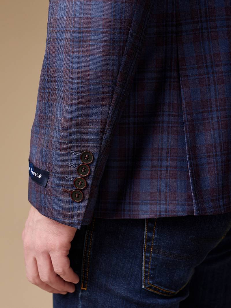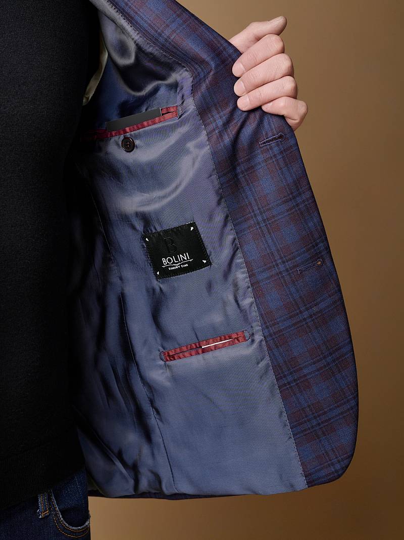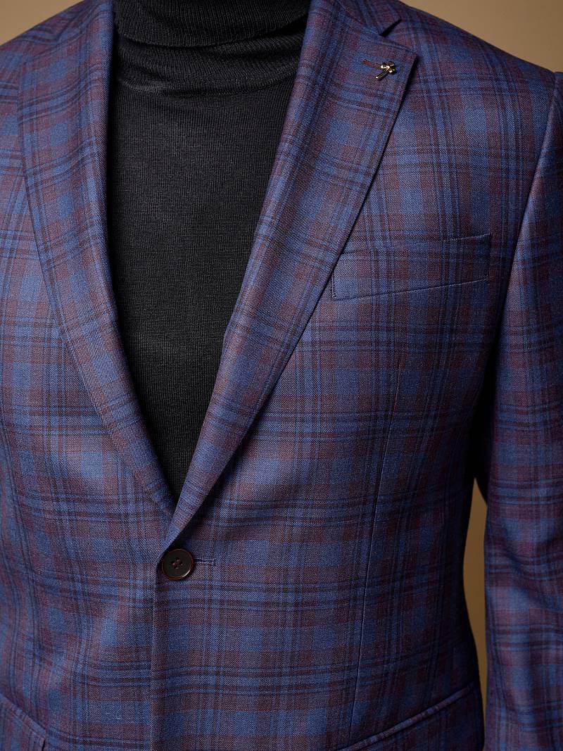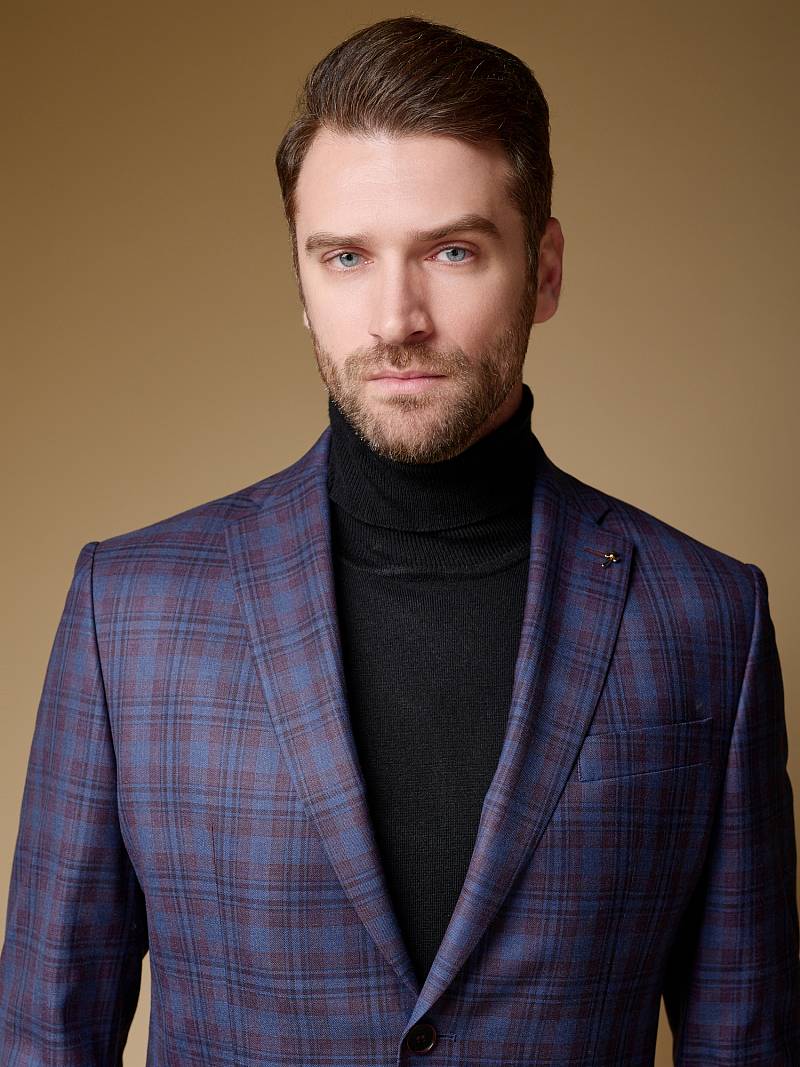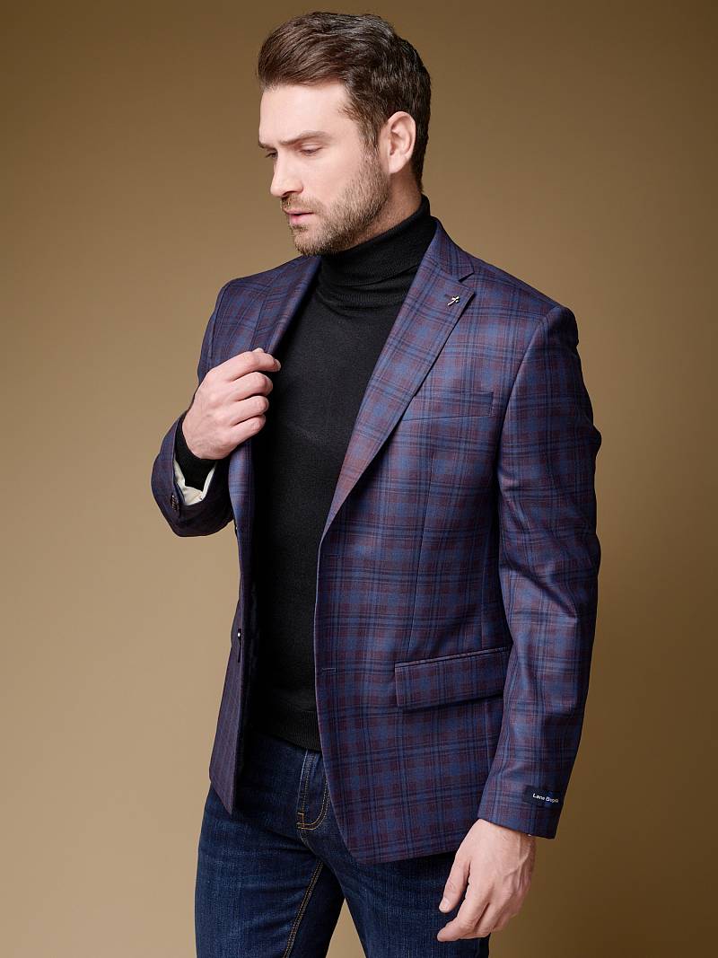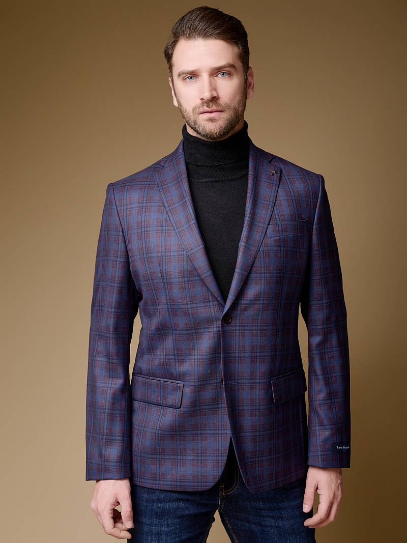 Classic fit (ПОЛУПРИЛЕГАЮЩИЙ СИЛУЭТ), Пиджак однобортный на две пуговицы, с двумя боковыми накладными карманами и нагрудной листочкой. Рукава втачные, двухшовные со шлицей и четырьмя декоративными пуговицами. По спинке расположены две шлицы. Пиджак на подкладке, с двумя внутренними карманами.
