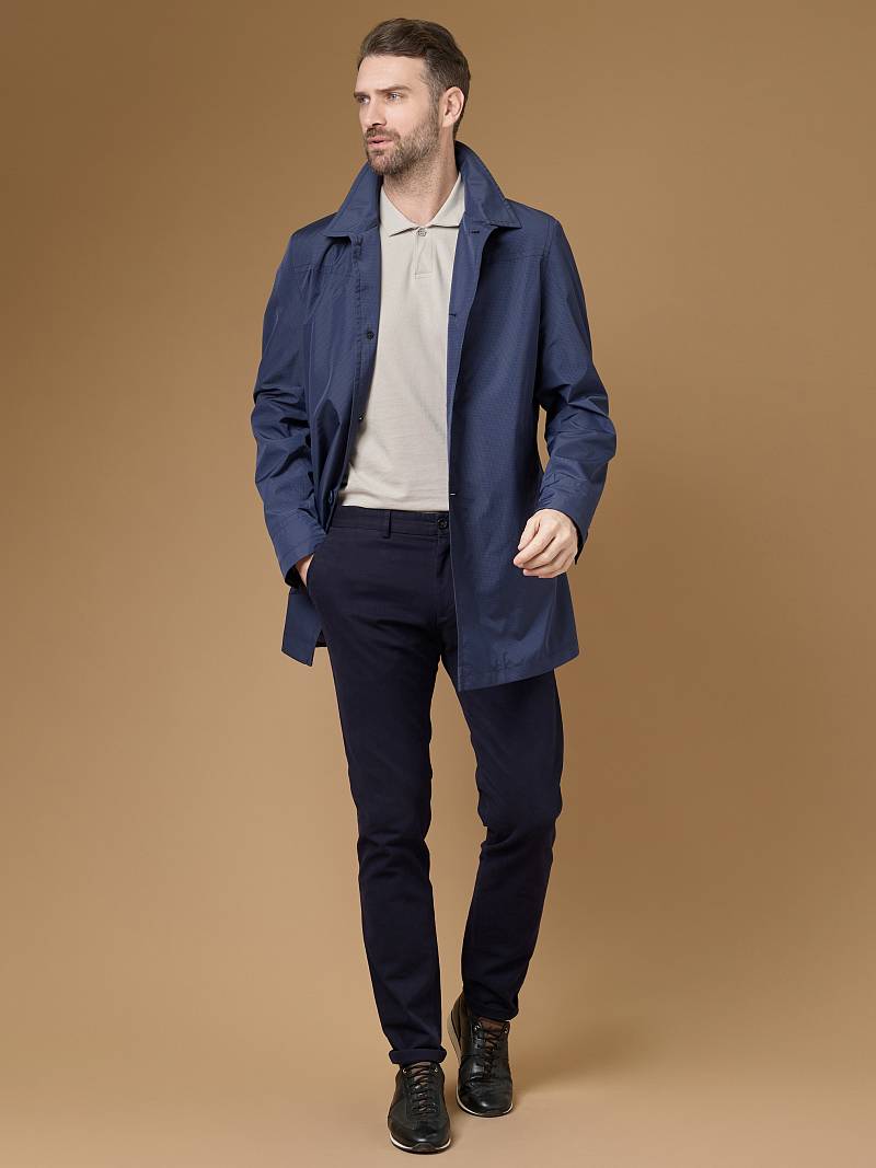 Плащ мужской весенний осенний прилегающего силуэта из ветрозащитной и водонепронницаемой ткани с дополнительной специальной обработкой эффективно защитит в непогоду . Оригинальный мужской плащ модного фасона производства известного бренда BAZIONI подчеркнет вашу индивидуальность. Застегивается на пуговицы. Полочки и спинка с отрезными кокетами. Имеются глубокие прорезные карманы на скрытых магнитах, внутренний карман на молнии . Демисезонный тренч украшают декоративными пуговицами сделанными специально вручную с матовой обработкой под каждый цвет ткани. Плащ на весну и осень, отлично подойдет на работу в офис или в институт.