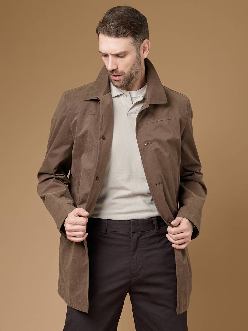 Плащ мужской весенний осенний прилегающего силуэта из курточной ткани с мембраной TPU эффективно защитит в непогоду. Современная одежда из материалов с ТПУ покрытием отличается отличной дышащей способностью, что в сочетании с водонепроницаемостью и защитой от ветра обеспечивает комфорт пользователю.