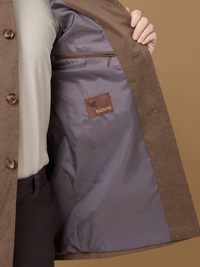 Оригинальный мужской плащ модного фасона производства известного бренда BAZIONI подчеркнет вашу индивидуальность. Застегивается на пуговицы. Полочки и спинка с отрезными кокетами. Имеются глубокие прорезные карманы на скрытых магнитах, внутренний карман на молнии . Демисезонный тренч украшают декоративными пуговицами сделанными специально вручную с матовой обработкой под каждый цвет ткани. Плащ на весну и осень, отлично подойдет на работу в офис или в институт.
