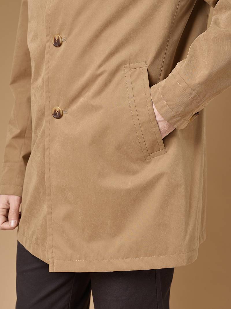 Плащ мужской весенний осенний прилегающего силуэта из курточной ткани с мембраной TPU эффективно защитит в непогоду. Современная одежда из материалов с ТПУ покрытием отличается отличной дышащей способностью, что в сочетании с водонепроницаемостью и защитой от ветра обеспечивает комфорт пользователю.