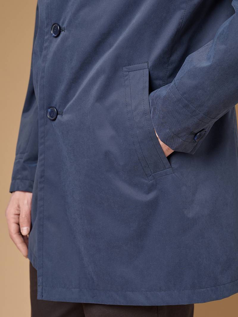 Плащ мужской весенний осенний прилегающего силуэта из курточной ткани с мембраной TPU эффективно защитит в непогоду. Современная одежда из материалов с ТПУ покрытием отличается отличной дышащей способностью, что в сочетании с водонепроницаемостью и защитой от ветра обеспечивает комфорт пользователю.