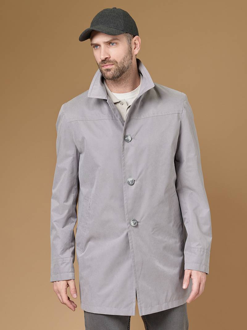 Плащ мужской классический полуприлегающего силуэта, 4 пуговицы и 1 шлица. Длина изделия по спинке для роста 176 - 85см. Ткань верха: 55% нейлон, 45% хлопок. Подкладка: 100% полиэстер. Без утеплителя