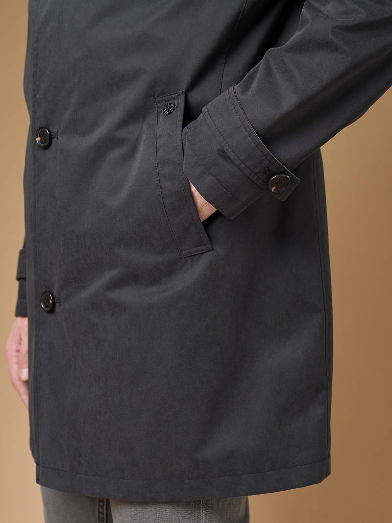 Плащ мужской весенний осенний полуприлегающего силуэта из плащевой ткани с мембраной TPU эффективно защитит в непогоду. Современная одежда из материалов с ТПУ покрытием отличается отличной дышащей способностью, что в сочетании с водонепроницаемостью и защитой от ветра обеспечивает комфорт пользователю.