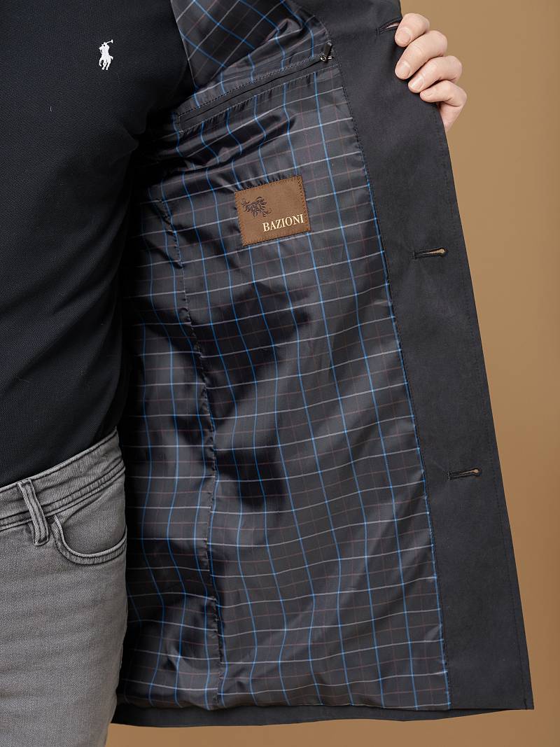 Плащ мужской весенний осенний прилегающего силуэта из из плащевой ткани с мембраной TPU эффективно защитит в непогоду. Современная одежда из материалов с ТПУ покрытием отличается отличной дышащей способностью, что в сочетании с водонепроницаемостью и защитой от ветра обеспечивает комфорт пользователю. Оригинальный мужской плащ модного фасона производства известного бренда BAZIONI подчеркнет вашу индивидуальность. Застегивается на пуговицы, воротник - стойка, при расстегивании выглядит как с лацканами, пата на воротнике защищит от непогоды. Имеются глубокие прорезные карманы на скрытых магнитах, внутренний карман на молнии . Внутренняя стойка со стороны подкладки, детали листочек, паты рукавов - оформлены декоративными строчками. Демисезонный тренч украшают декоративными пуговицами сделанными специально вручную с матовой обработкой под каждый цвет ткани. ОТЛИЧНОЕ СОЧЕТАНИЕ ЦЕНЫ И КАЧЕСТВА ПРОВЕРЕННОЕ ВРЕМЕНЕМ И ТЫСЯЧАМИ ПОСТОЯННЫХ КЛИЕНТОВ МАРКИ BAZIONI .