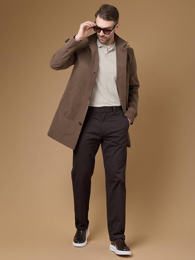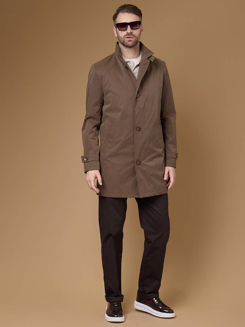 Плащ мужской классический полуприлегающего силуэта, 4 пуговицы и 1 шлица. Длина изделия по спинке для роста 176 - 98см. Ткань верха: 55% нейлон, 45% хлопок. Подкладка: 100% полиэстер. Без утеплителя. Рекомендуемый температурный режим от +15°С до -5°С -7°С
