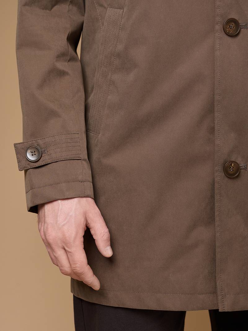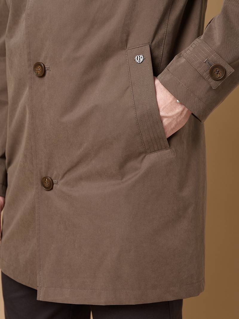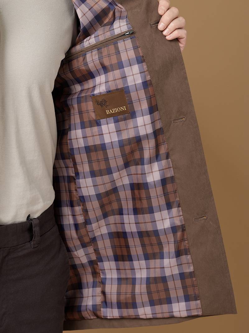 Плащ мужской весенний осенний прилегающего силуэта из из плащевой ткани с мембраной TPU эффективно защитит в непогоду. Современная одежда из материалов с ТПУ покрытием отличается отличной дышащей способностью, что в сочетании с водонепроницаемостью и защитой от ветра обеспечивает комфорт пользователю. Оригинальный мужской плащ модного фасона производства известного бренда BAZIONI подчеркнет вашу индивидуальность. Застегивается на пуговицы, воротник - стойка, при расстегивании выглядит как с лацканами, пата на воротнике защищит от непогоды. Имеются глубокие прорезные карманы на скрытых магнитах, внутренний карман на молнии . Внутренняя стойка со стороны подкладки, детали листочек, паты рукавов - оформлены декоративными строчками. Демисезонный тренч украшают декоративными пуговицами сделанными специально вручную с матовой обработкой под каждый цвет ткани. ОТЛИЧНОЕ СОЧЕТАНИЕ ЦЕНЫ И КАЧЕСТВА ПРОВЕРЕННОЕ ВРЕМЕНЕМ И ТЫСЯЧАМИ ПОСТОЯННЫХ КЛИЕНТОВ МАРКИ BAZIONI .