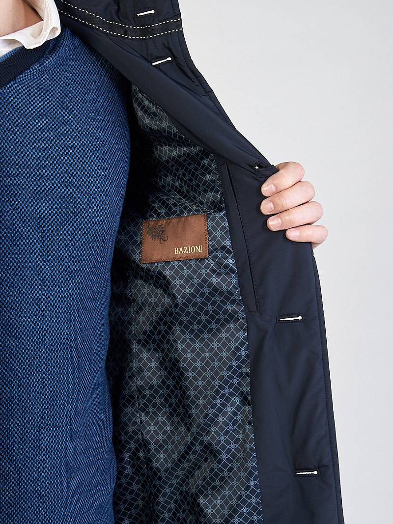 Плащ мужской утепленный, однобортный, с центральной застежкой на пуговицы. Воротник стойка, Рукав втачной двухшовный, Спинка с центральным швом и шлицей. На подкладке два внутренних кармана на молнии. Длина спинки для роста 176 - 90см. Ткань верха: 100%полиэстер. Подкладка: 100%полиэстер. Утеплитель:  термоплюс 80гр