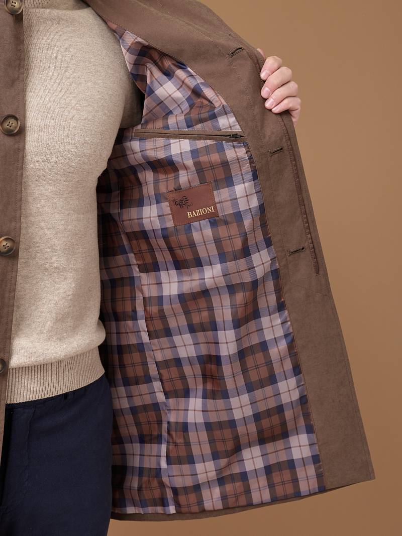 Мужской утепленный плащ из курточной ткани с мембраной, которая легко защитит от моросящего дождя или влажной погоды. В данном изделии легко планировать путешествие во влажные или дождливые области, так как ткань обладает высоким показателем водонепроницаемости. Также ткань обладает высокой устойчивостью к трению и прочностью, является дышащей, Это позволяет избежать преждевременного испарения влаги с поверхности кожи и улучшить комфорт при активном использовании. Все эти факторы влияют на комфорт и долговечность использования одежды. Дизайнеры Bazioni позаботились о вас, плащ утеплили утеплителем - термоплюс.