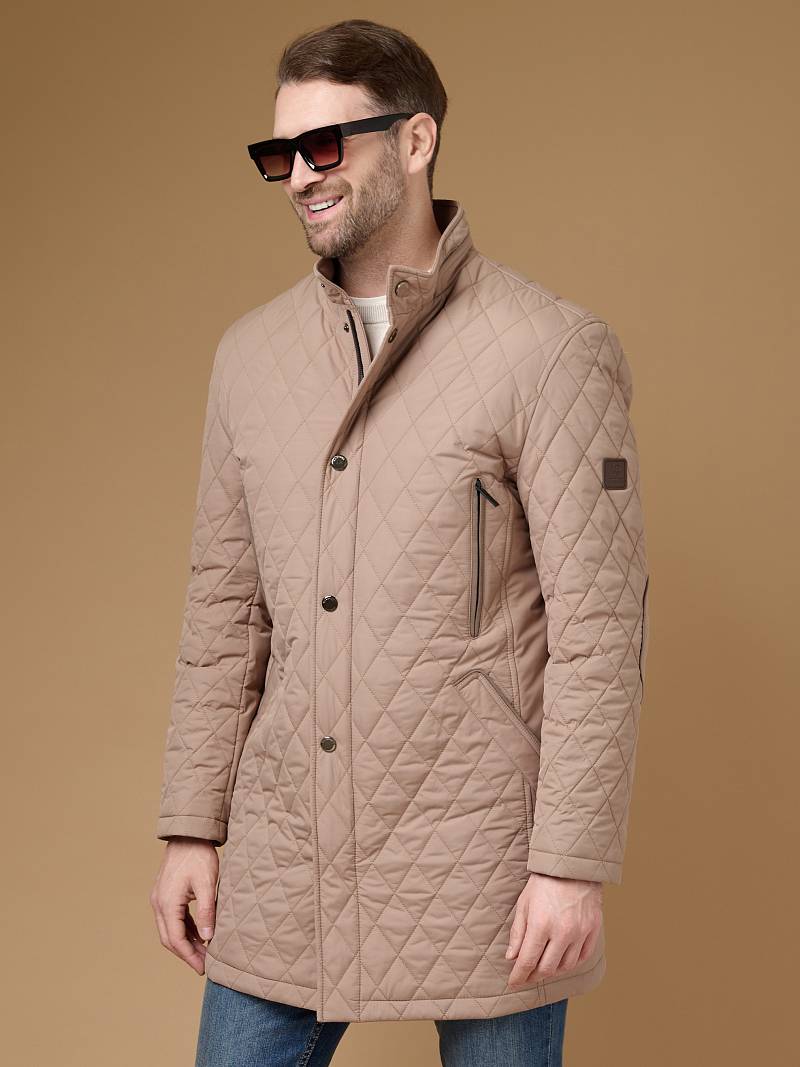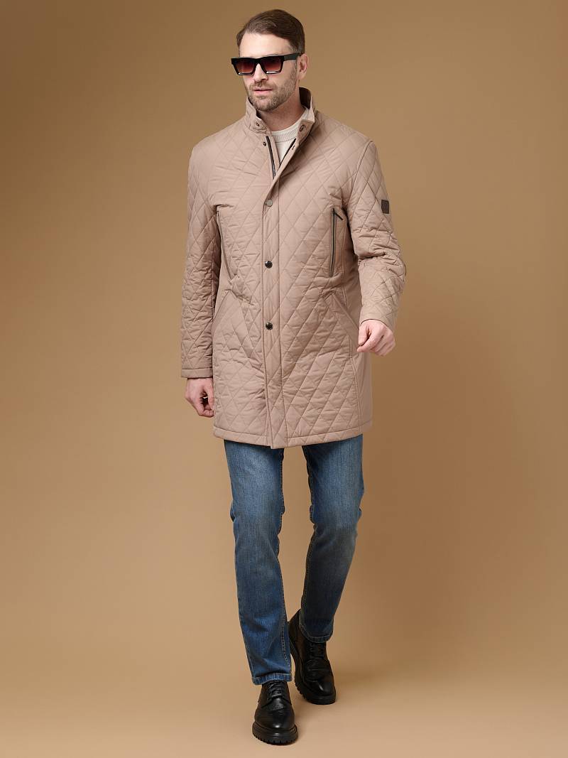 Плащ мужской из стёганной курточной ткани с обработкой WR, PU MILKY - с водоотталкивающей пропиткой. Ткань характеризуется отличными воздухопроницаемыми и ветрозащитными свойствами, обладает износоустойчивостью и долговечностью. Застёжка на молнию и кнопки, воротник стойка. Четырое кармана на полочках - два верхних и два нижних боковых. Листочки карманов, стойка воротника с декоративным кантом. Длина изделия по спинке для роста 176 - 90см. Ткань верха: 100%полиэстер. Подкладка: 100%полиэстер. Утеплитель: термоплюс 160гр/100гр