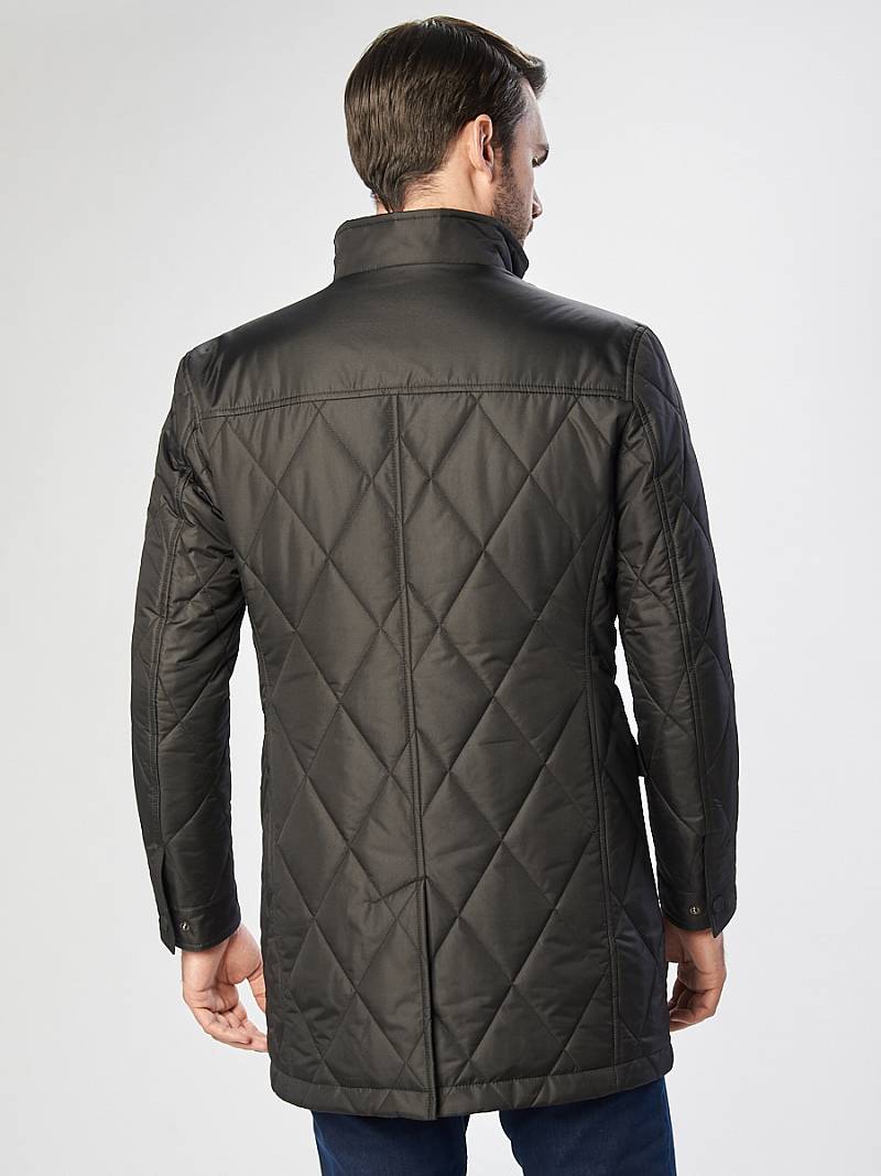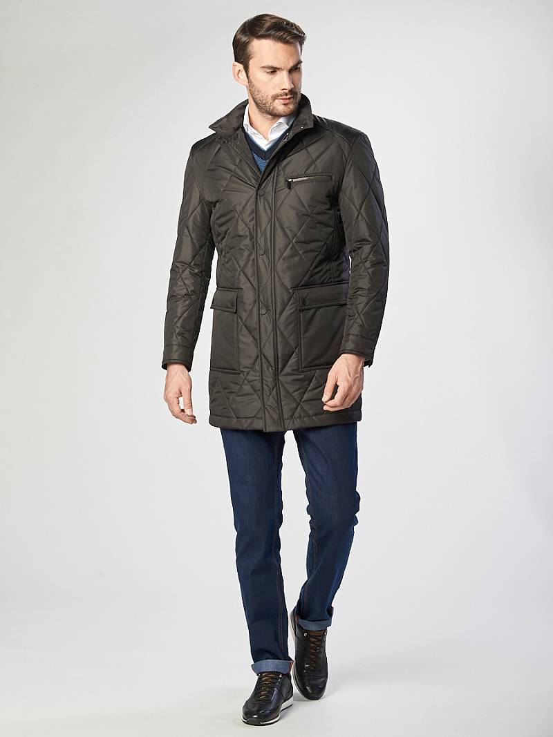 Плащ мужской утепленный из стёганной курточной ткани с обработкой WR, PU MILKY - с водоотталкивающей пропиткой. Ткань характеризуется отличными воздухопроницаемыми и ветрозащитными свойствами, обладает износоустойчивостью и долговечностью. Застежка центральная на молнию и кнопки. Воротник стойка, Полочка и спинка с отрезными кокетками. На полочке боковые накладные карманы с клапаном+ на левой полочке нагрудный прорезной карман "в рамку". Рукав втачной двухшовный. Спинка со средним швом и 2 шлицами. На подкладке два внутренних кармана на молнии. Длина изделия по спинке для роста 176- 90см. Ткань верха: 100%полиэстер. Подкладка: 100%полиэстер. Утеплитель: термоплюс 100 гр./100гр.