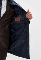 Плащ мужской утепленный из стеганной ткани, однобортный. Застежка центральная на молнию и кнопки. Воротник стойка, Полочка и спинка с отрезными кокетками. На полочке боковые накладные карманы с клапаном+ на левой полочке нагрудный прорезной карман "в рамку". Рукав втачной двухшовный. Спинка со средним швом и 2 шлицами. На подкладке два внутренних кармана на молнии. Длина изделия по спинке для роста 176- 90см. Ткань верха: 60%шерсть, 40%полиэстер. Подкладка: 100%полиэстер. Утеплитель: термоплюс 100гр/100гр.