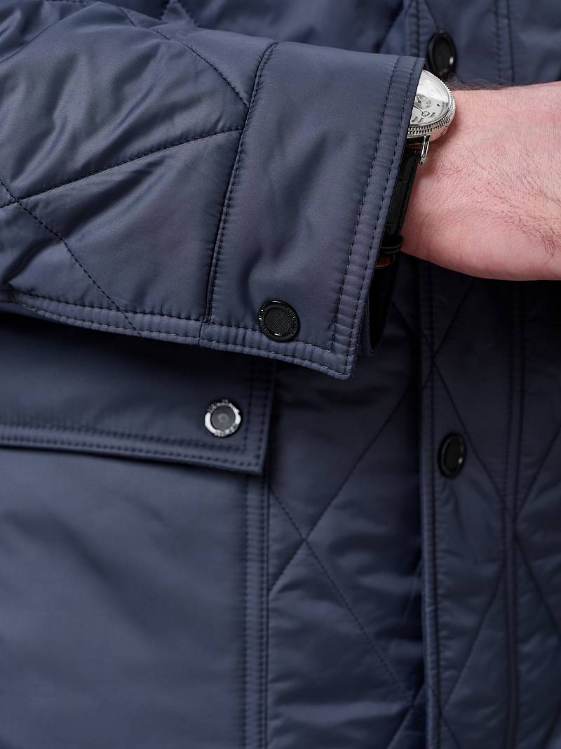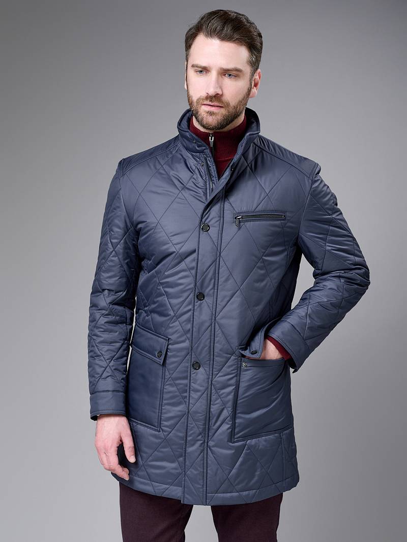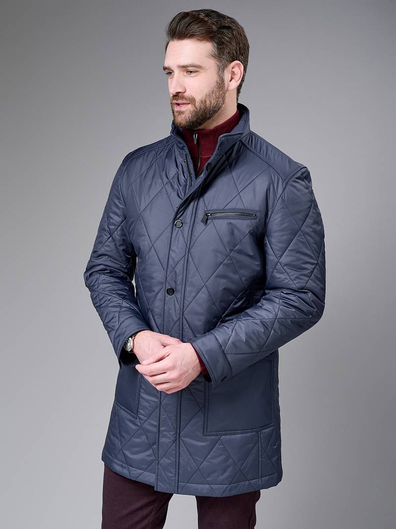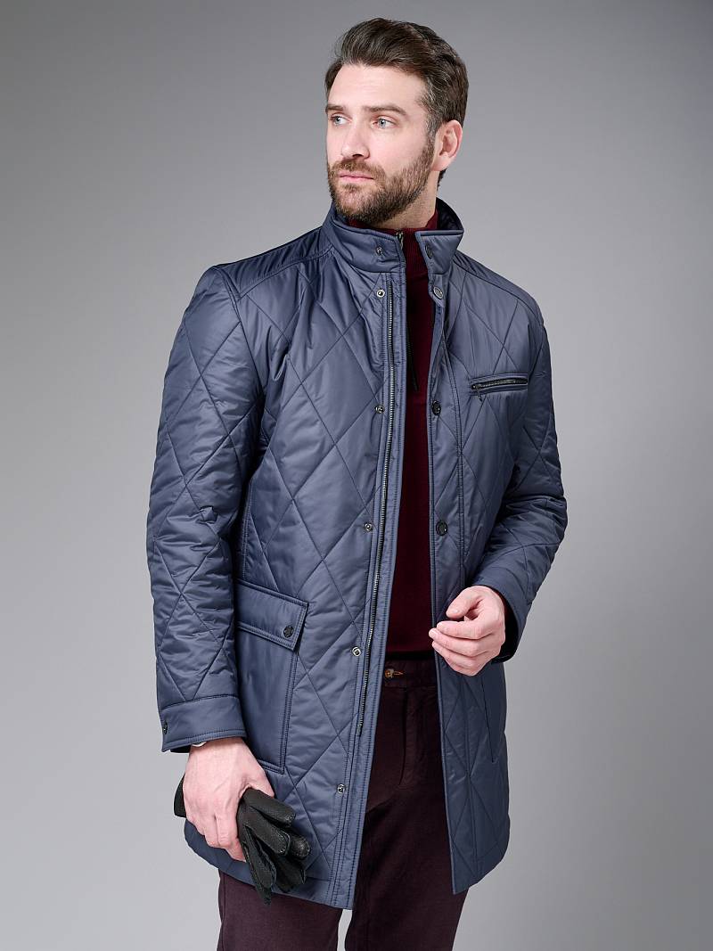 Плащ мужской утепленный из стеганной ткани.Ткань плащевая с водоотталкивающей отделкой для защиты от ветра и влаги. Застежка центральная на молнию и кнопки. Воротник стойка, Полочка и спинка с отрезными кокетками. На полочке боковые накладные карманы с клапаном+ на левой полочке нагрудный прорезной карман "в рамку". Рукав втачной двухшовный. Спинка со средним швом и 1 шлицей. На подкладке два внутренних кармана на молнии. Изделие отлично подходит для повседневной носки. Длина изделия по спинке для роста 176- 90см. Ткань верха: 100%полиэстер. Подкладка: 100%полиэстер. Утеплитель: термоплюс 100гр./100гр.