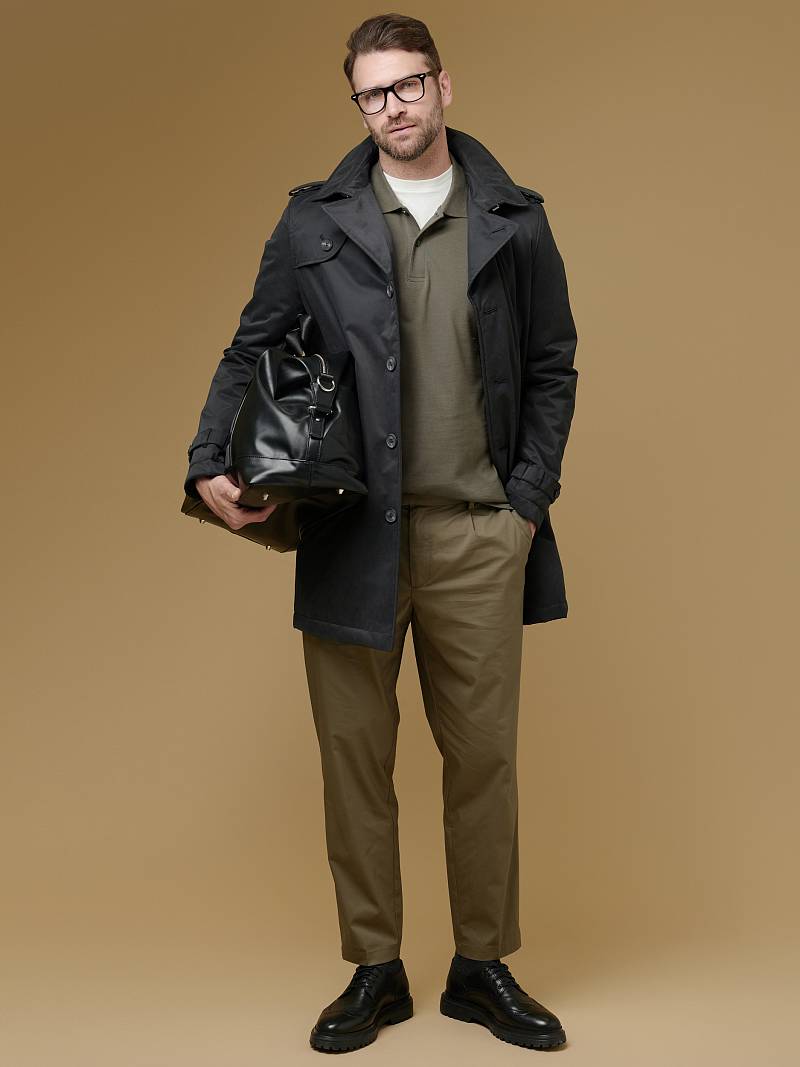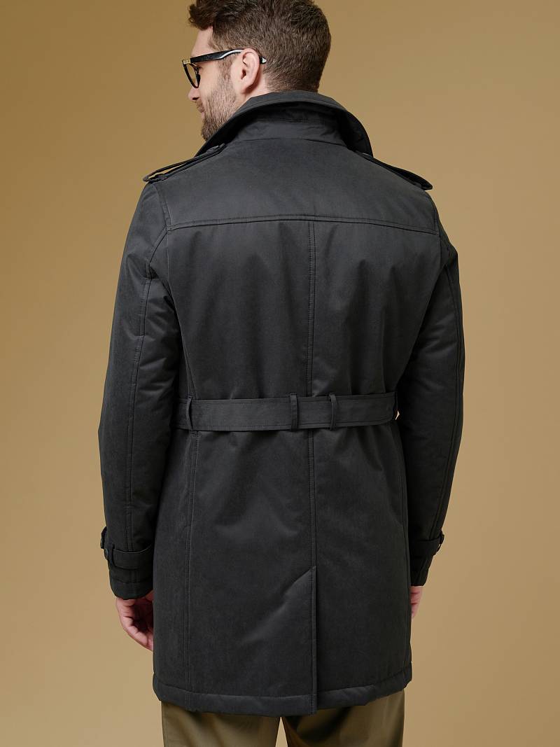 Плащ- тренч мужской утепленный однобортный с лацканами, с застежкой доверху на пуговицы, Изделие из курточной ткани с мембраной TPU. Современная одежда из материалов с TPU покрытием отличается отличной дышащей способностью, что в сочетании с водонепроницаемостью и защитой от ветра обеспечивает комфорт пользователю. Правая полочка с отлетной кокеткой. На полочках - боковые наклонные карманы с листочкой на скрытых магнитах. Спинка с притачной кокеткой и шлицей в среднем шве. Рукав втачной двухшовный, в нижней части рукава в шлевках закреплена пата, регулируемая двумя пуговицами. Воротник - высокий отложной со стойкой и крючком необходим для защиты от ветра и будет шиком - его немного приподнять. Погоны на пуговицах - самая классическая деталь тренча. Плащ по талии регулируется ремнем с пряжкой, пряжка позволяет быстро затянуть пояс в непогоду. На подкладке два внутренних кармана на пуговицах. Длина спинки для роста 176 - 98см. Ткань верха: 55% нейлон, 45% хлопок. Подкладка: 100%полиэстер. Утеплитель: термоплюс 60гр/60гр. Рекомендуемый температурный режим от 15°С до 0-5°С
