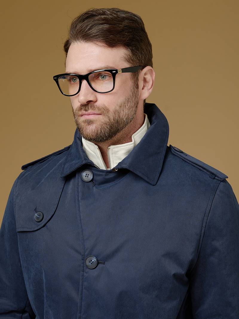 Плащ- тренч мужской утепленный однобортный с лацканами, с застежкой доверху на пуговицы, Изделие из курточной ткани с мембраной TPU. Современная одежда из материалов с TPU покрытием отличается отличной дышащей способностью, что в сочетании с водонепроницаемостью и защитой от ветра обеспечивает комфорт пользователю. Правая полочка с отлетной кокеткой. На полочках - боковые наклонные карманы с листочкой на скрытых магнитах. Спинка с притачной кокеткой и шлицей в среднем шве. Рукав втачной двухшовный, в нижней части рукава в шлевках закреплена пата, регулируемая двумя пуговицами. Воротник - высокий отложной со стойкой и крючком необходим для защиты от ветра и будет шиком - его немного приподнять. Погоны на пуговицах - самая классическая деталь тренча. Плащ по талии регулируется ремнем с пряжкой, пряжка позволяет быстро затянуть пояс в непогоду. На подкладке два внутренних кармана на пуговицах. Длина спинки для роста 176 - 98см. Ткань верха: 55% нейлон, 45% хлопок. Подкладка: 100%полиэстер. Утеплитель: термоплюс 60гр/60гр. Рекомендуемый температурный режим от 15°С до 0-5°С