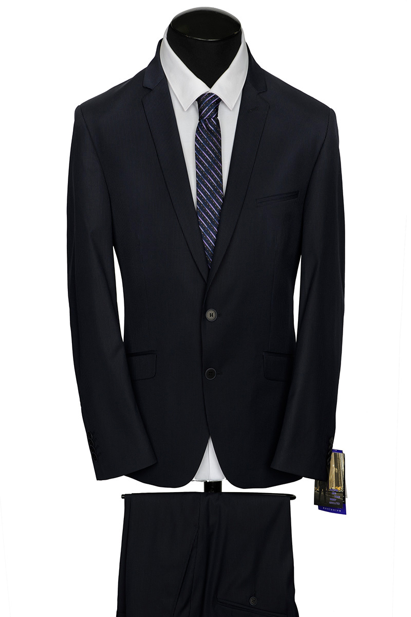 Костюм мужской Slim fit 2 пуговицы, 2 шлицы. Вспушка по лацканам, краю борта, по нагрудной листочке, по клапанам.