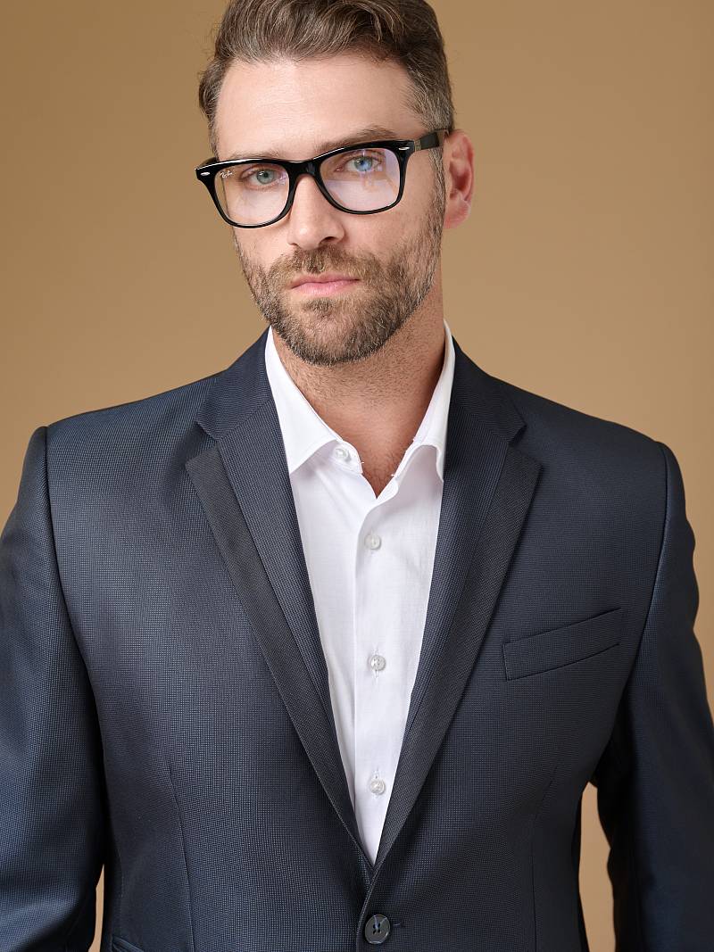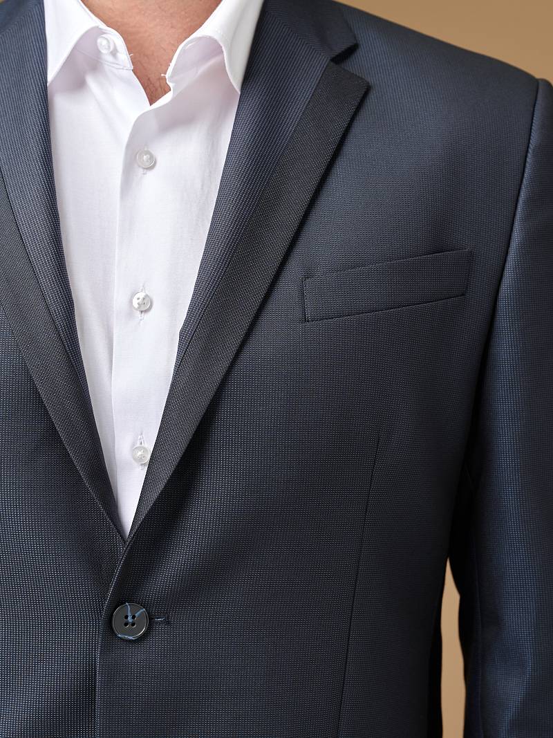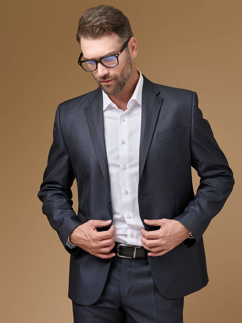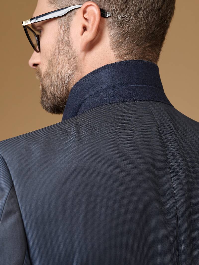 Slim fit, две пуговицы, две шлицы, комбинация из 2-х тканей. BAZIONI