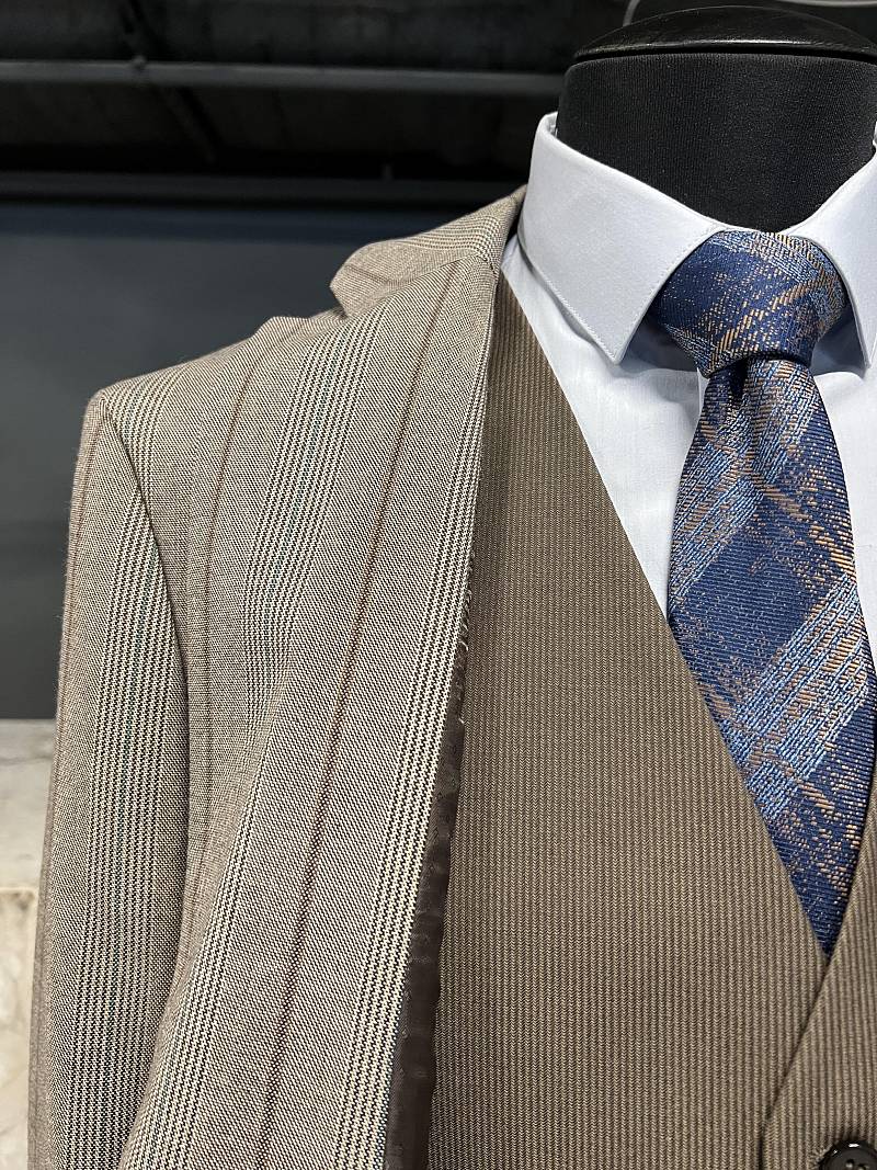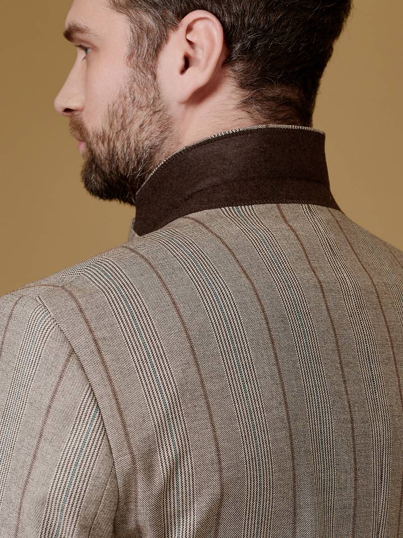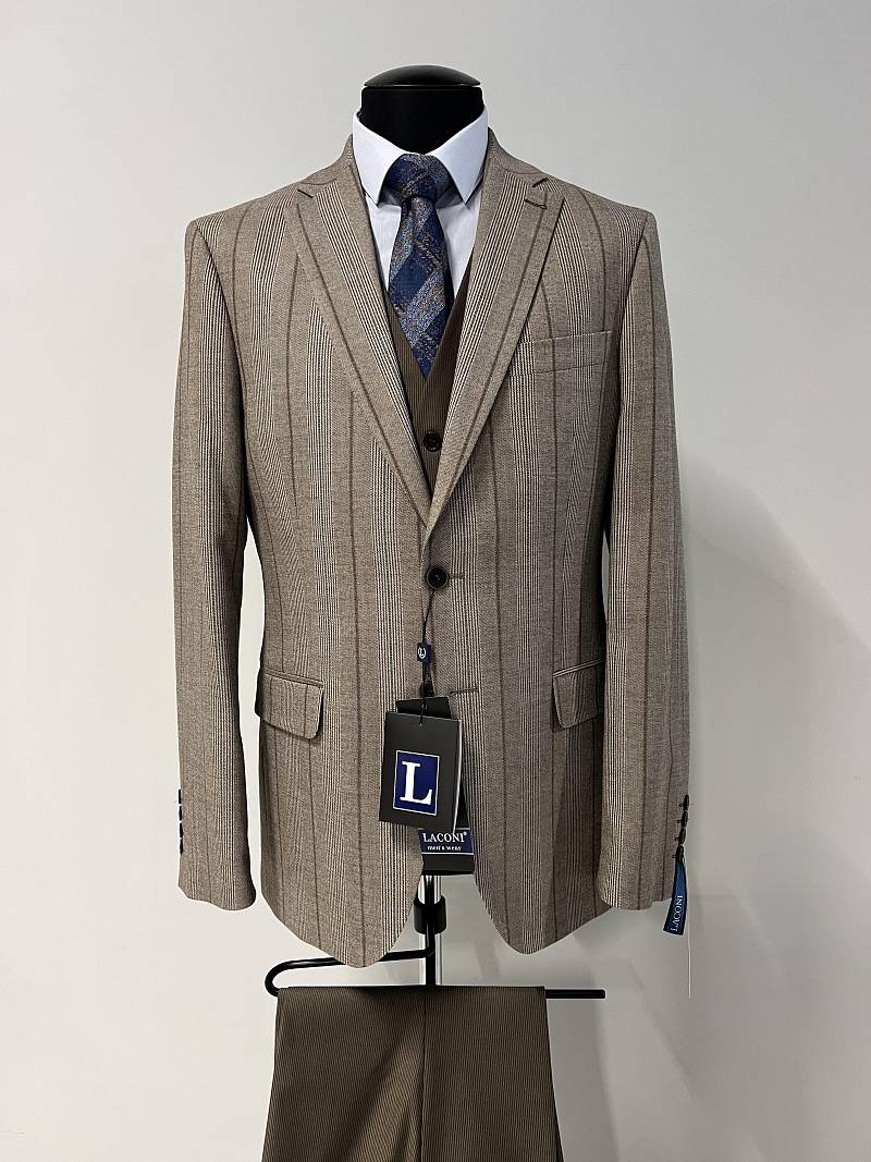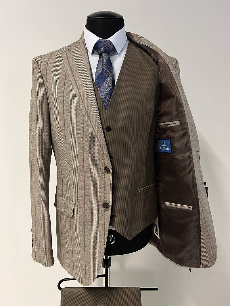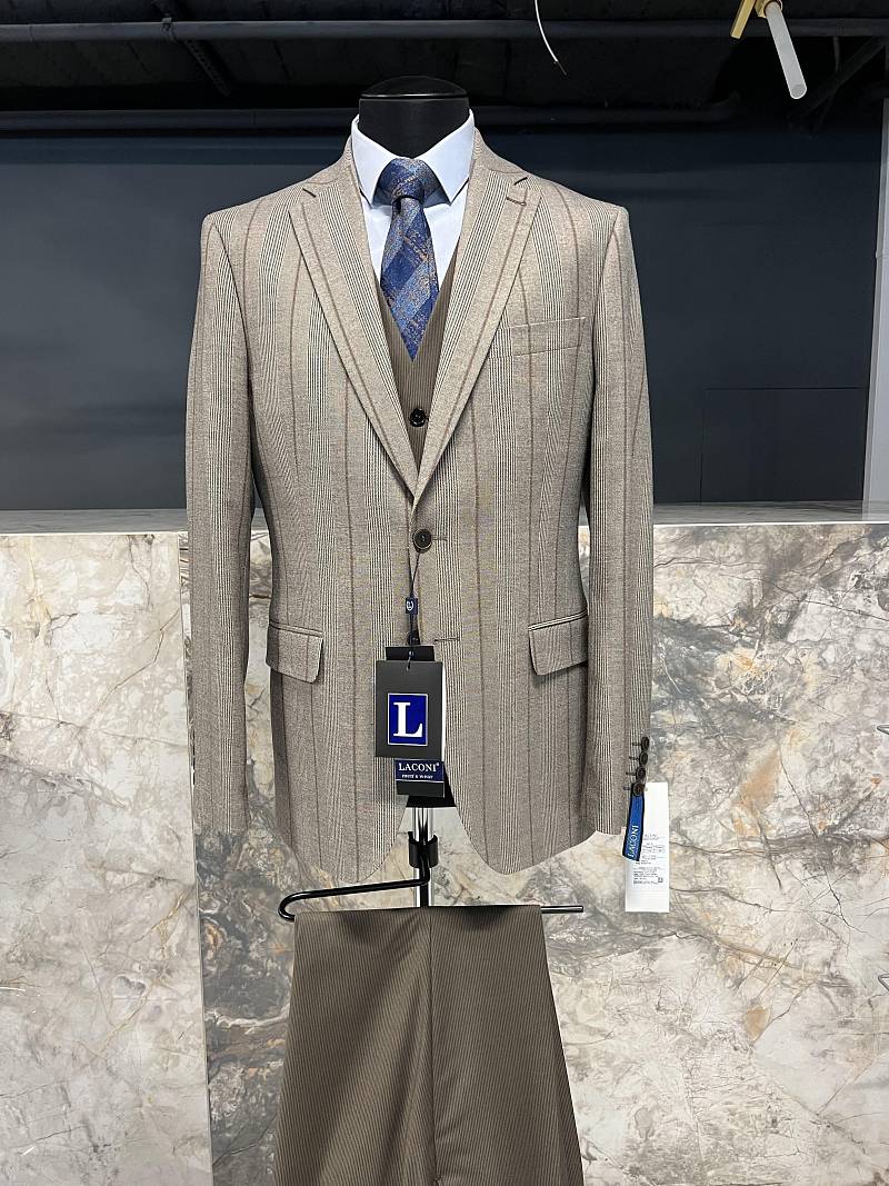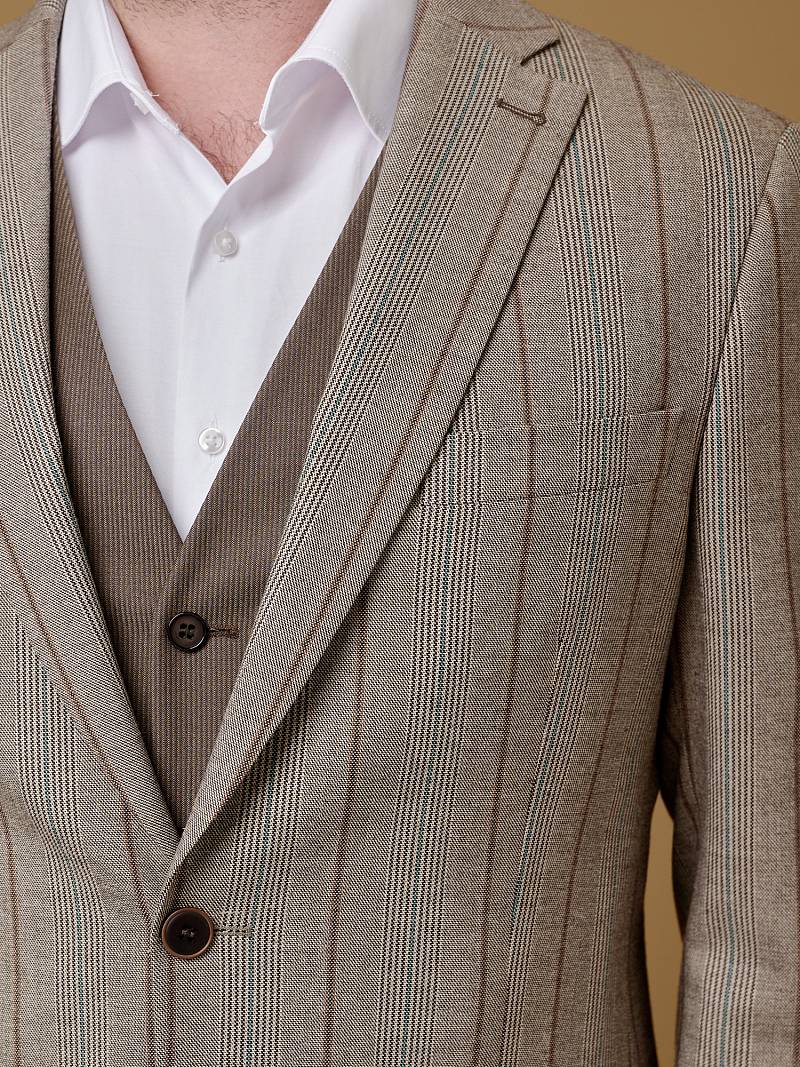 Slim fit (ПРИЛЕГАЮЩИЙ СИЛУЭТ), рекомендуется брать на размер больше. Пиджак однобортный на две пуговицы, с двумя боковыми карманами и нагрудной листочкой. Рукава втачные, двухшовные со шлицей и четырьмя декоративными пуговицами. По спинке расположены две шлицы. Пиджак на подкладке, с двумя внутренними карманами.