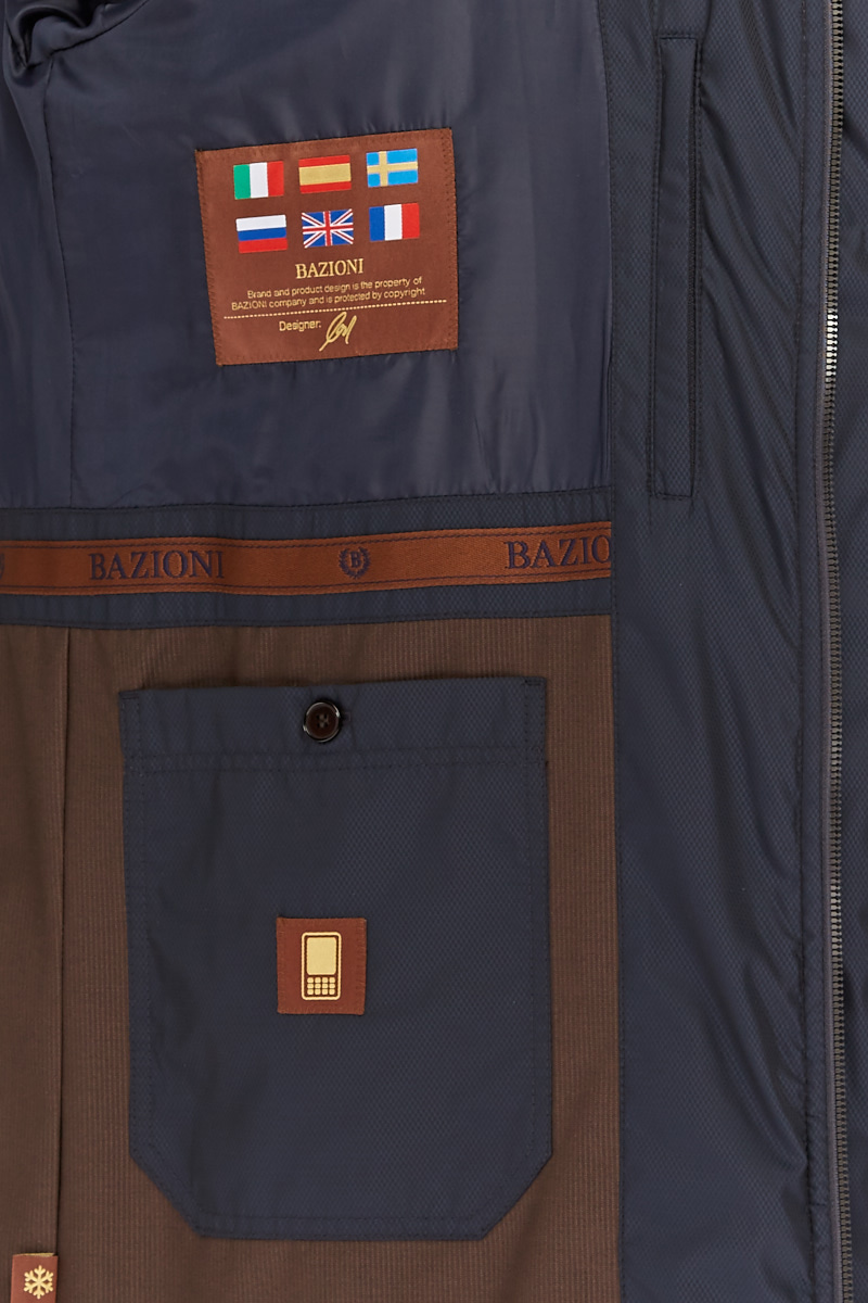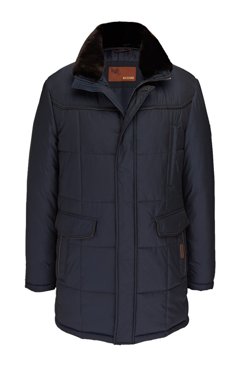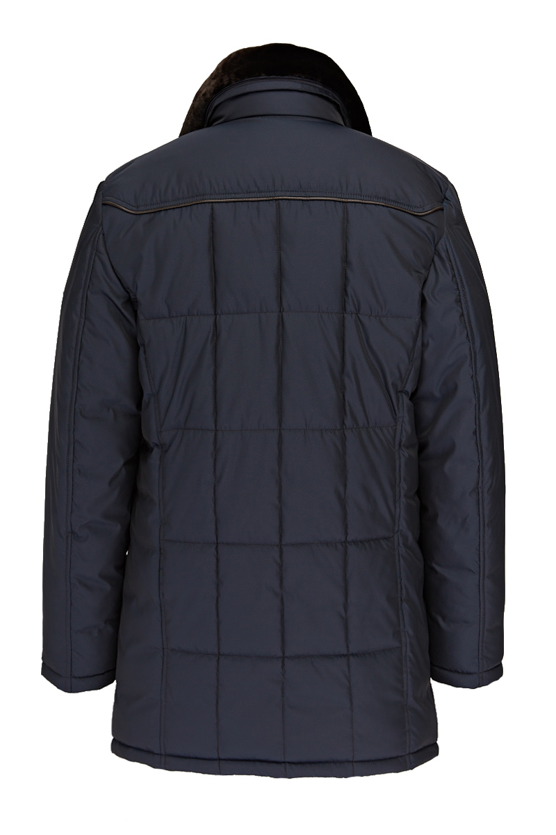 Куртка мужская утепленная со съемным натуральным меховым воротником, воротник - стойка. Центральная застежка изделия на молнию и ветрозащитную планку на 5 потайных кнопок. Полочки, спинка- с фигурными кокетками. Рукава, полочки и спинка - простеганы стежкой "квадрат". На полочках - четыре нижних прорезных кармана: 1-й-с фигурными клапанами, 2-ой - наклонный с листочками. также имеется верхний прорезной карман на молнии. На подкладке по линии талии - настрочная фирменная тесьма. Длина изделия по спинке для роста 176 - 84см. Ткань верха: 100%полиэстер. Подкладка: 50% вискоза, 50% полиэстер. Утеплитель: био-пух 100% (250 гр). Воротник-мех натуральный "мутон"