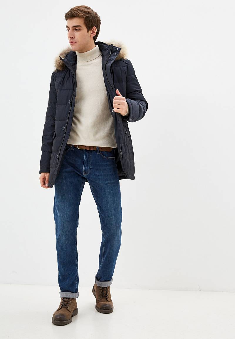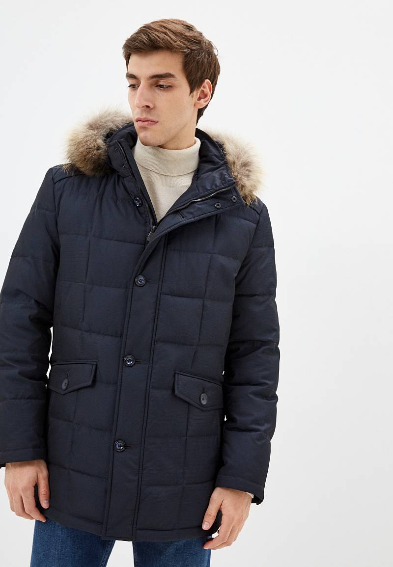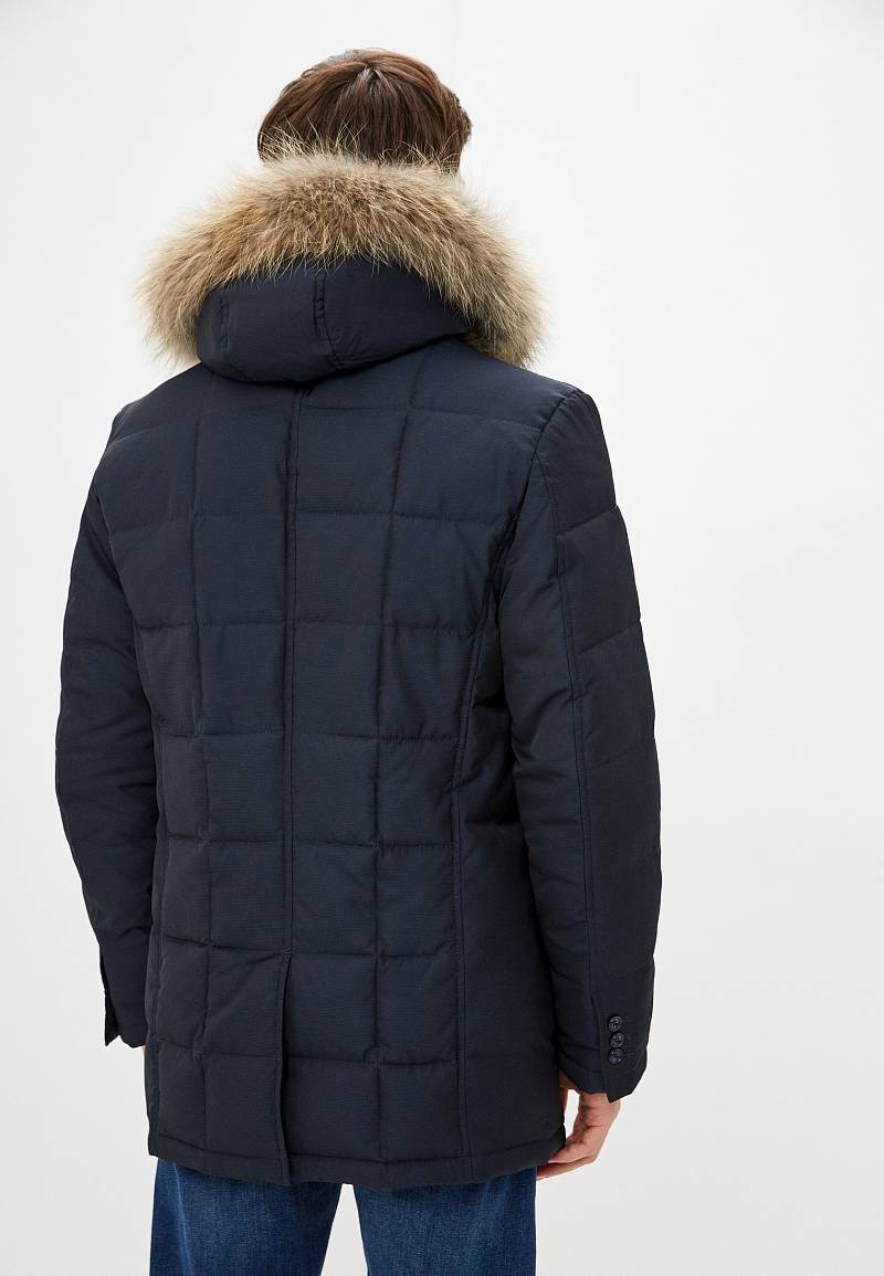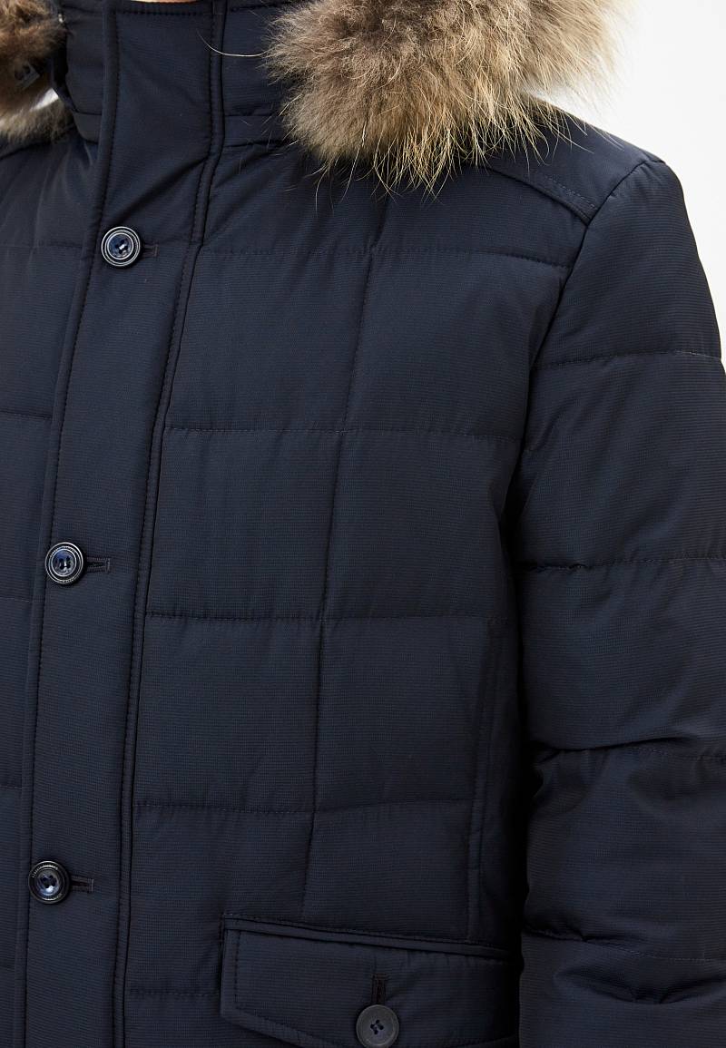 Куртка мужская утепленная со съемным капюшоном, воротник - стойка. Центральная застежка изделия на молнию и ветрозащитную планку на 5 пуговиц. Полочки, спинка и рукава - простеганы стежкой "квадрат". На полочках - нижние прорезные карманы с фигурными клапанами на пуговицу, также имеются карманы внизу рельефных швов. На спинке - шлица, застегивается на 2 потайные кнопки. На подкладке два внутренних кармана на молниях и 1 карман на пуговице. Длина изделия по спинке для роста 176 - 82см. Ткань верха: 100% полиэстер. Подкладка: 100% полиэстер. Утеплитель: био- пух 220гр/200гр. Опушка: мех натуральный-ФИНСКИЙ АУКЦИОННЫЙ ЕНОТ.