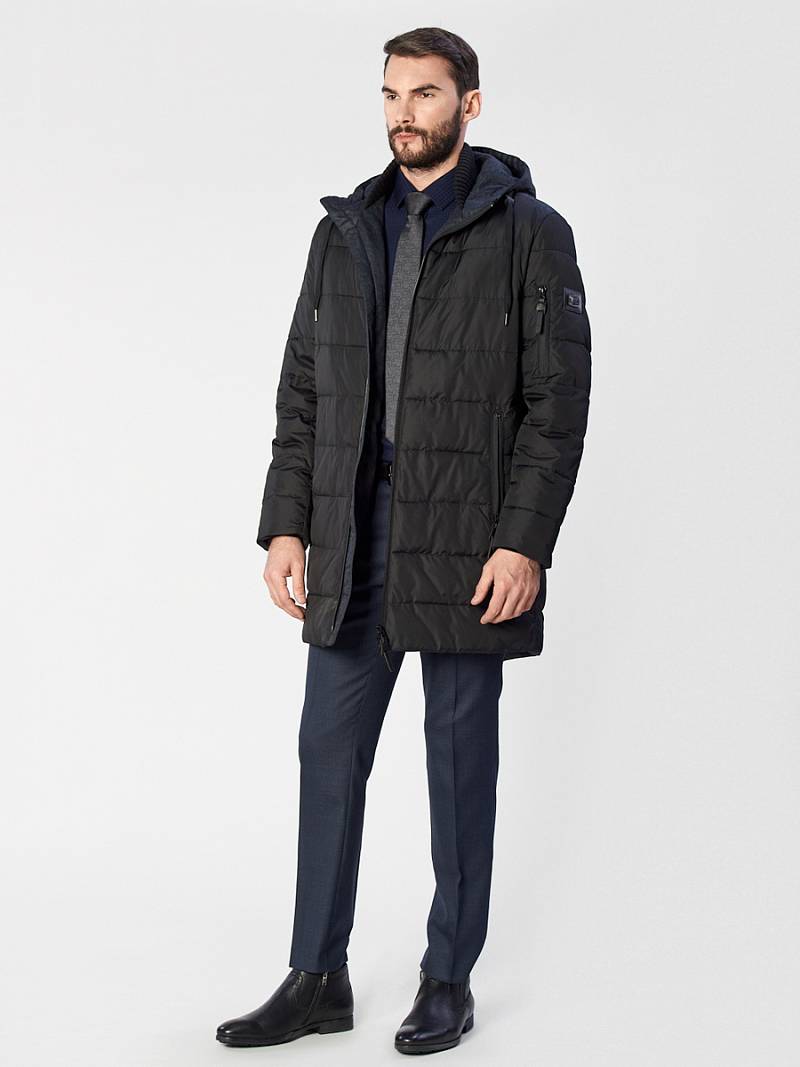 Куртка мужская утепленная с капюшоном из плащевой ткани на подкладке с центральной застежкой на двухзамковую молнию до низа изделия. Воротник стойка из трикотажного полотна. Несъемный капюшон. Передний край капюшона - оформлен кулисой, которая затягивается двумя фиксаторами. Полочки, спинка и рукава простеганы горизонтальной стежкой. Боковые карманы на молниях. Рукава втачные состоят из двух частей, на левом рукаве- фирменная нашивка и прорезной карман в рамку на молнии. По низу рукавов со стороны подкладки - трикотажные манжеты. На подкладке спинки в области талии - отделочная тесьма с фирменным логотипом , на полочках подкладки- 2 внутренних прорезных кармана с втачной листочкой на молнии. Длина изделия по спинке для роста 176 - 90см+4см(хвост). Ткань верха: 100% полиэстер. Подкладка: 100% полиэстер. Утеплитель: Био-пух 100% (220гр)
