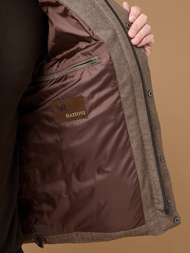 Для пошива короткого стеганного пуховика мастера марки BAZIONI использовали мягкую шерсть. Стеганые горизонтальные камеры пух-пакета наполнили гипоаллергенным био- пухом, поэтому модель получилась легкой и теплой. Изделие с отстегивающимся воротником из натурального меха Кролик REX, спереди застегивается на молнию и потайные кнопки. Натуральный мех воротника был выкрашен специально под цвет ткани изделия, мягкий и приятный на ощупь, согреет в морозную погоду. На полочках - удобные вместительные карманы на молниях. Спинка прямая с бочками, необходимая для свободы движения. Рекомендуется обработать изделие водонепроницаемым аэрозолем для защиты от неблагоприятных погодных условий. ПУХОВИК УКРАСИТ ВАШ ГАРДЕРОБ.
