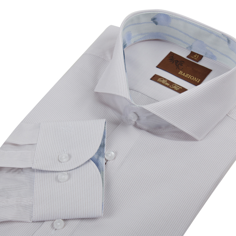 Slim fit, Воротник-акула, манжет на две пуговицы. отделка-внутренняя стойка, манжет.