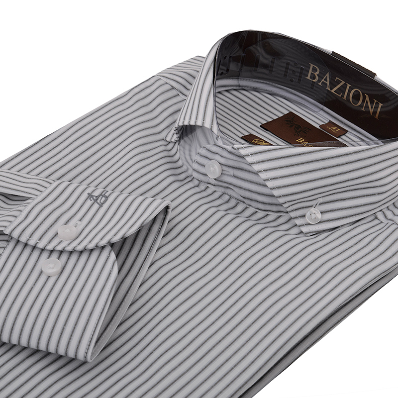 Slim fit, воротник-Акула на пуговицах, манжет на две пуговицы.