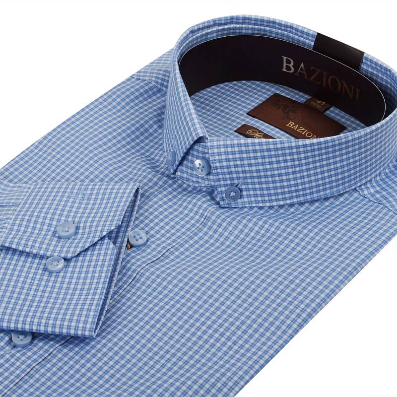Slim fit, Воротник-узкий на пуговицах, манжет на две пуговицы. Ложная планка по борту.