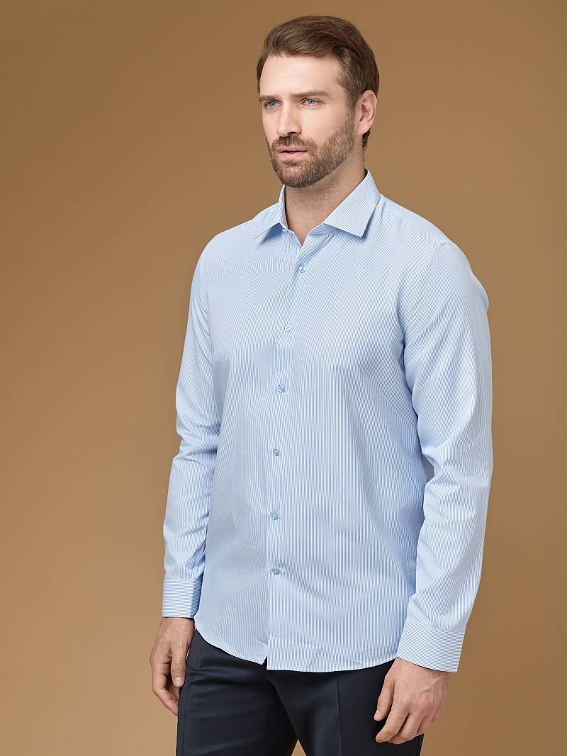 Сорочка мужская, Slim fit, воротник-классический, манжет с закругленными концами, застежка - без отделки.
