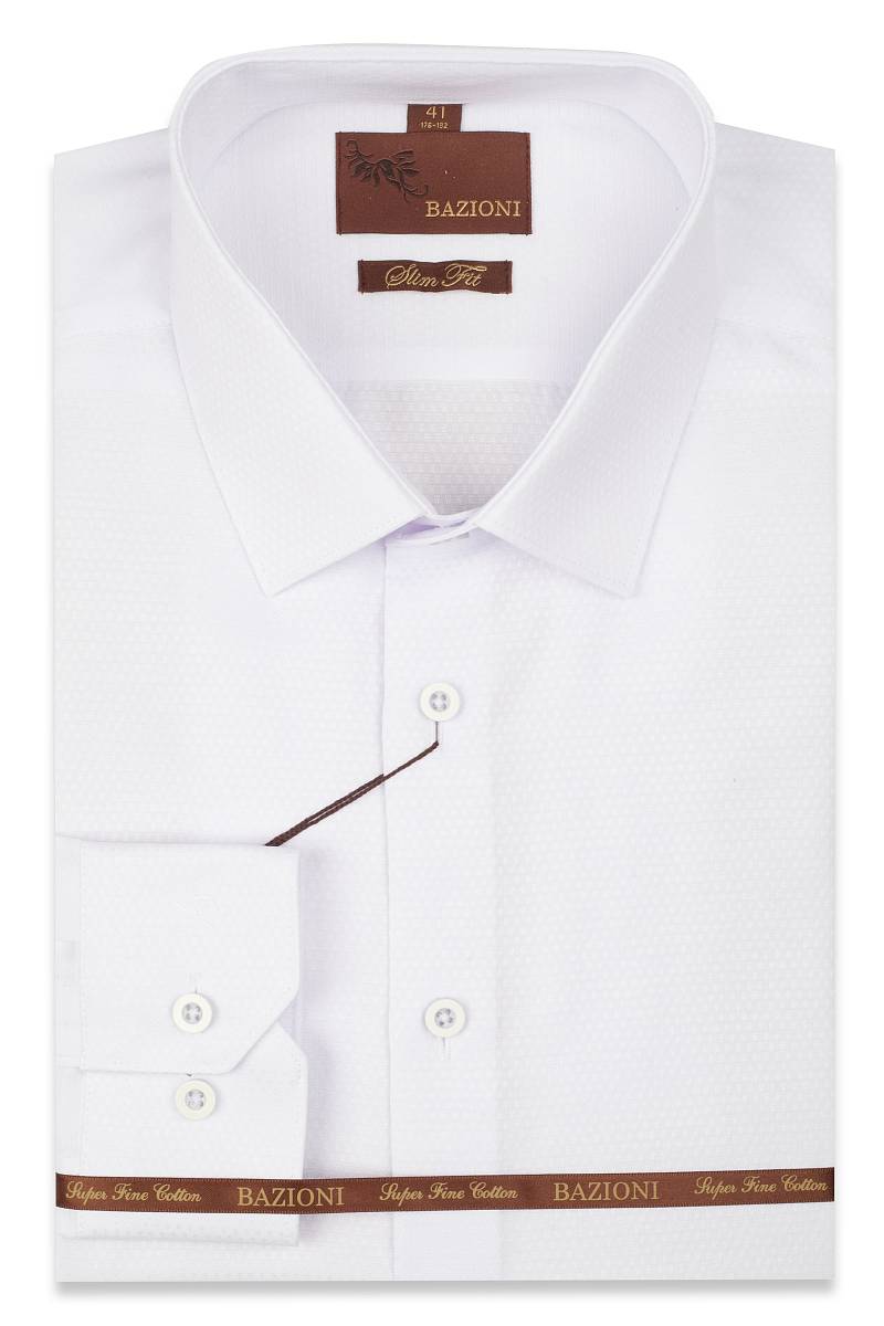 Slim fit, воротник-классический, манжет - с усеченным углом на две пуговицы, застежка - без отделки.