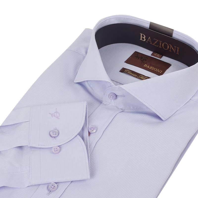 Classic fit, Воротник-акула на потайных пуговицах, Манжет на две пуговицы, Застежка- ложная планка.