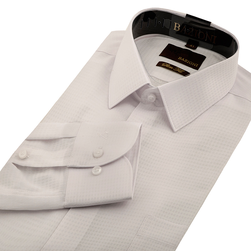Slim fit. Воротник-классический, манжет со скругленным углом, 1 карман, застежка-без отделки.