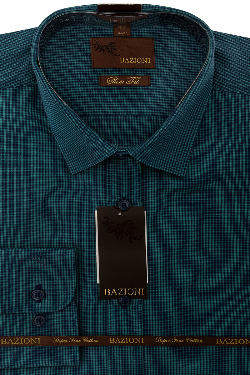 Slim fit, Воротник классический, манжет с закругленным углом, застежка - ложная планка
