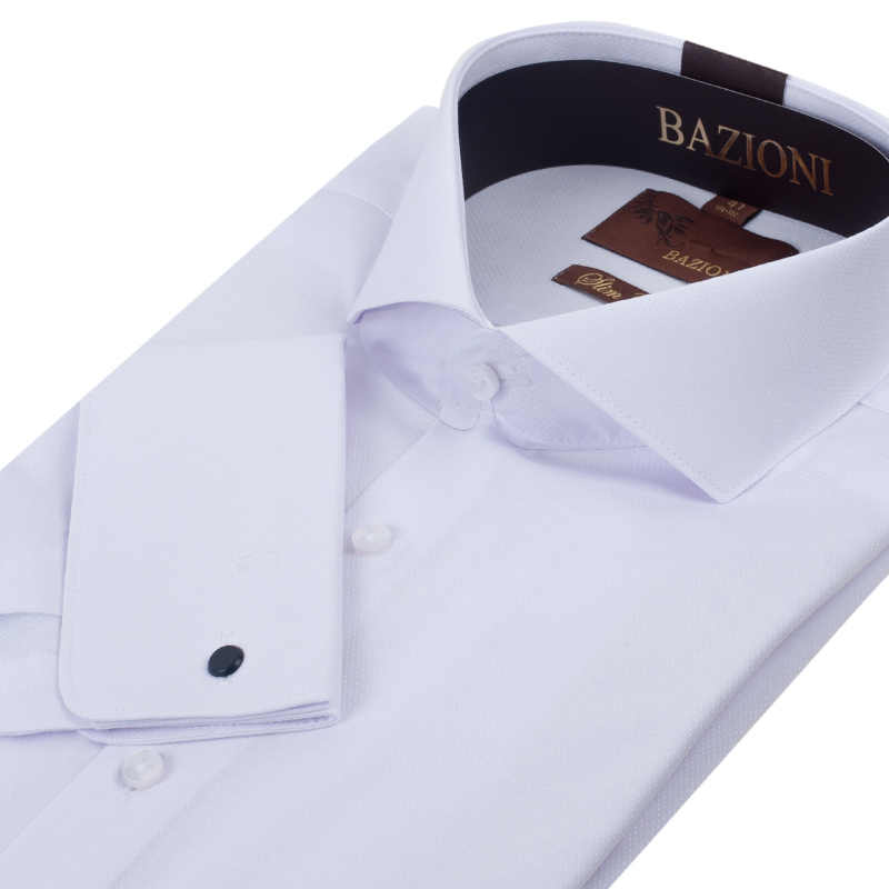 Slim fit, Воротник-Акула, Французский перегибной манжет, закругленной формы, под запонку