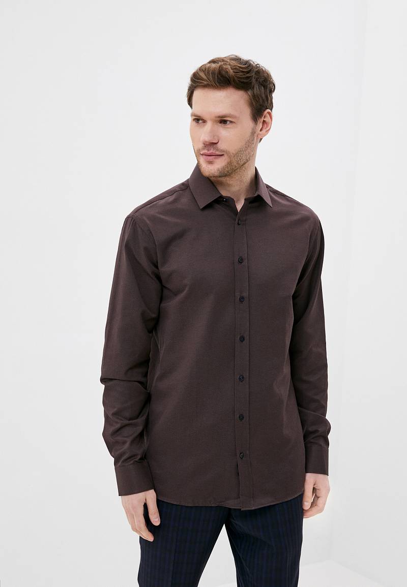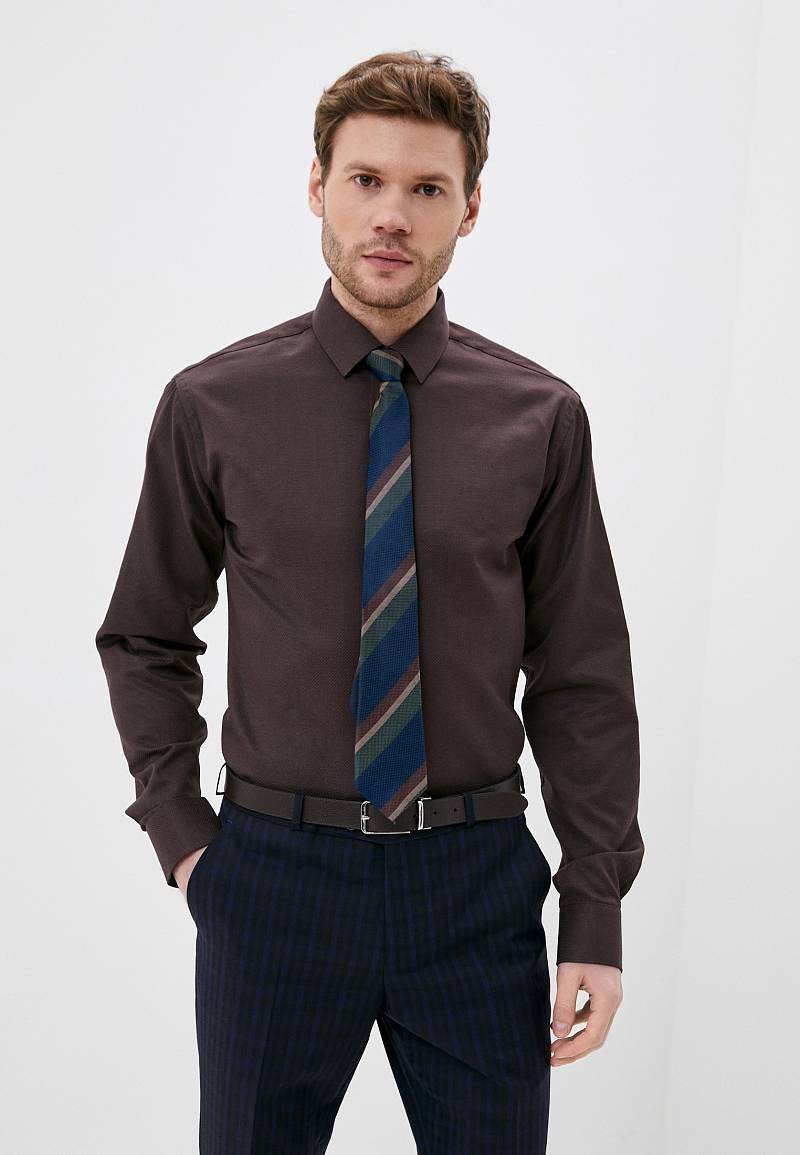 Classic fit. Воротник-классический, манжет со скругленным углом, на две пуговицы, застежка-ложная планка 3см, отделочная ткань-внутренняя кокетка.