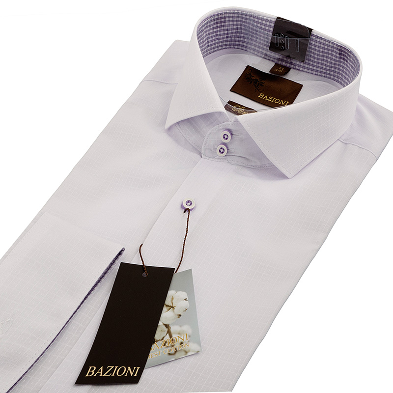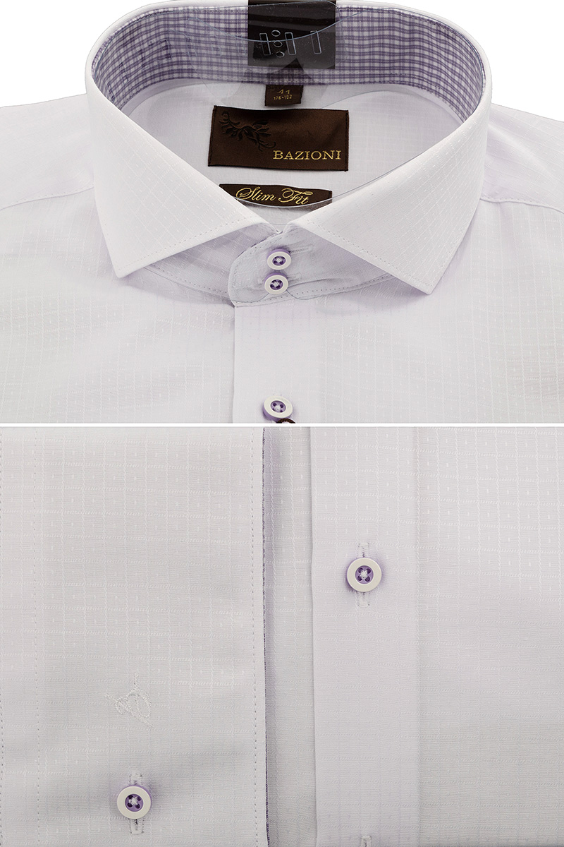 Slim fit, воротник-акула, стойка воротника - на 2 пуговицы. Манжет с универсальный под запонку, застежка - без отделки. Отделка - внутренняя стойка и внутренний манжет.