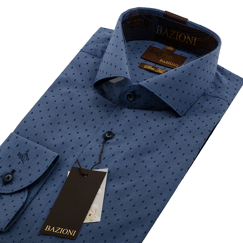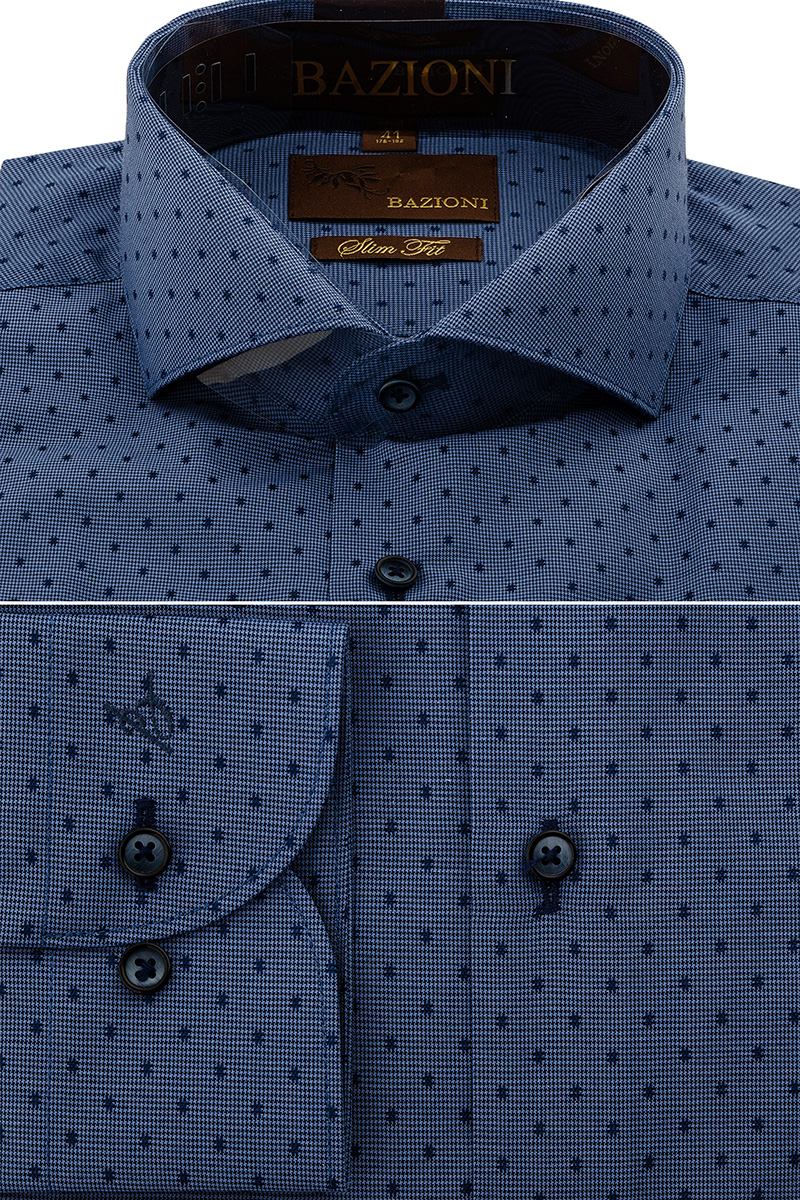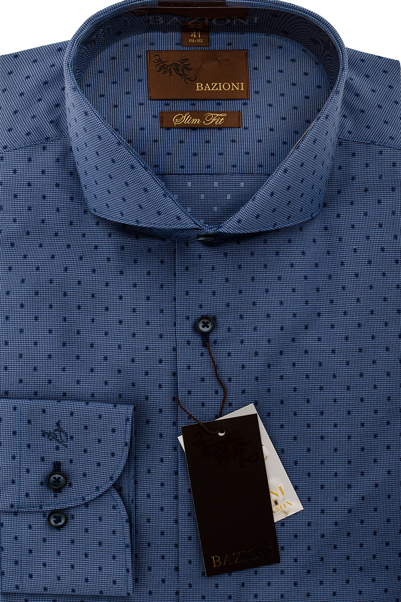 Slim fit, воротник - акула, манжет с закругленными углами, застежка - без отделки