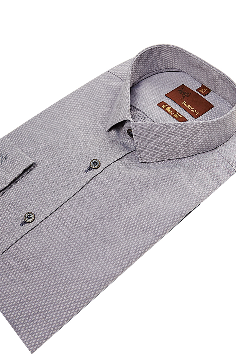 Slim fit, воротник-узкий, манжет с закругленными краями, застежка - ложная планка.